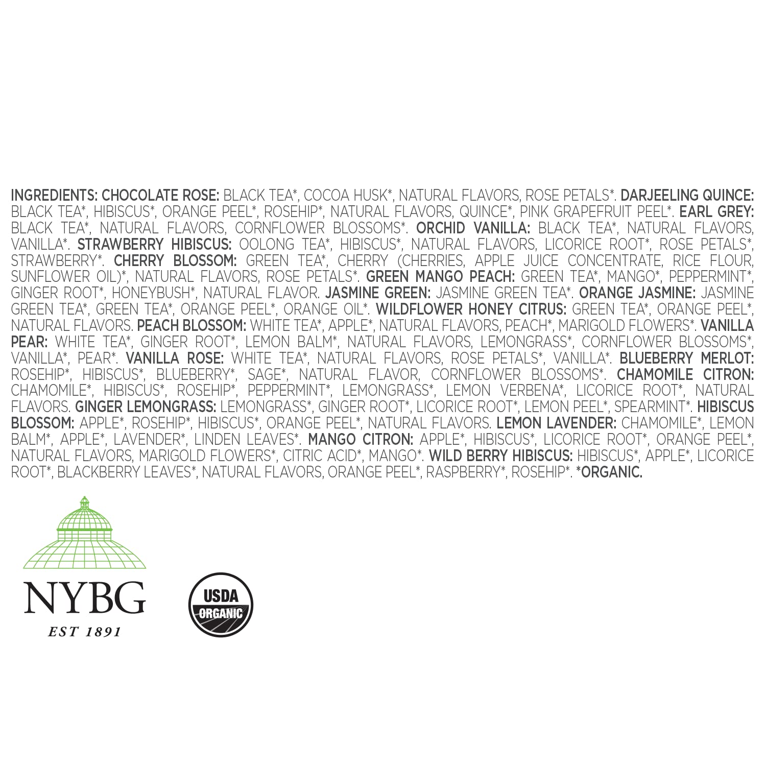 - ORGANIC TEA SAMPLER with 40 tea forte loose leaf tea infusers in our signature Pyramid Tea Infusers. This tea variety pack is inspired by our five years of partnership with The New York Botanical Gardens.