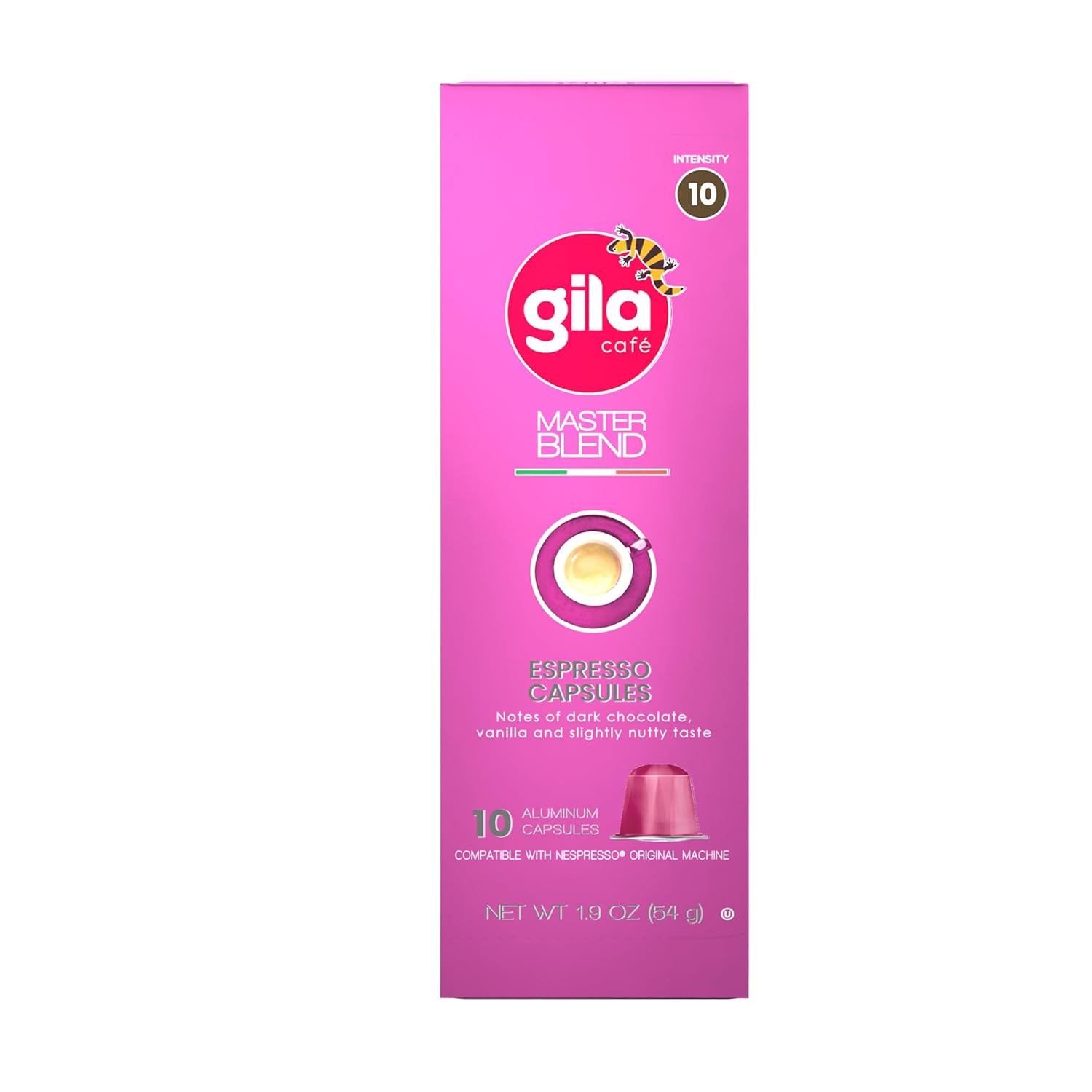 - Enjoy GILA Master Blend Coffee in its version of capsules compatible with the Nespresso system, 10 aluminum capsules with all the aroma and flavor of the coffee.
