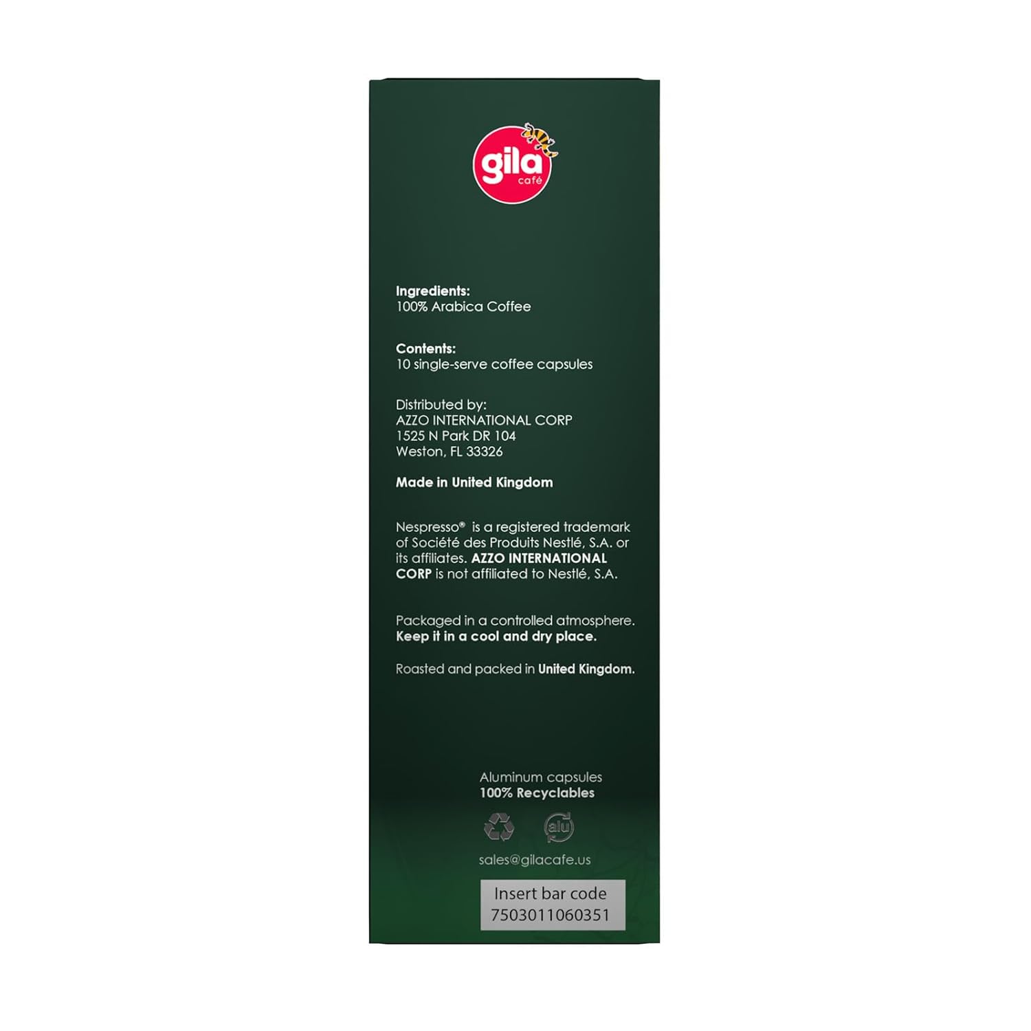 - Enjoy GILA Decaffeinated Coffee in its version of capsules compatible with the Nespresso system, 10 aluminum capsules with all the aroma and taste of real coffee.
