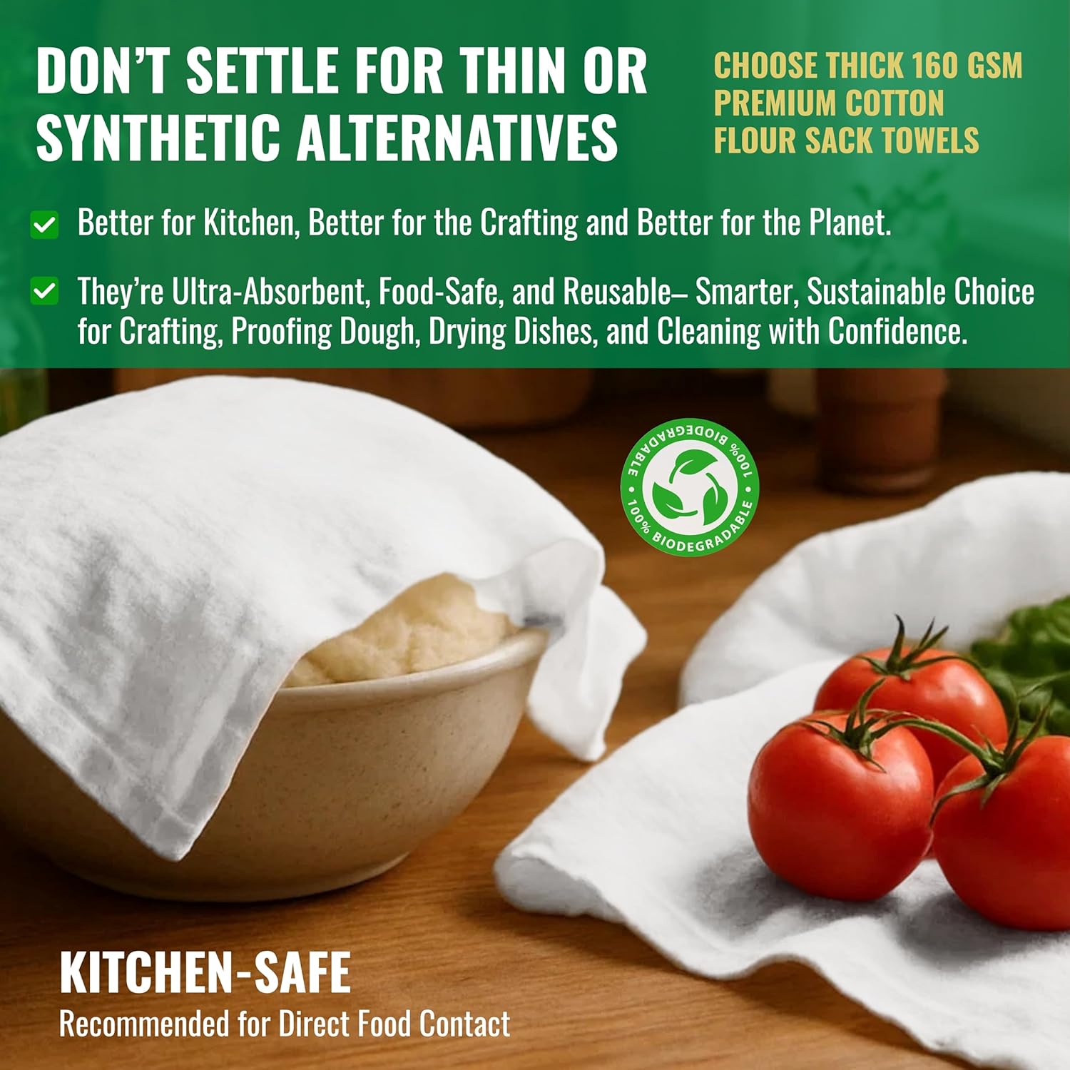 - ✅ 100% Premium Cotton – Safe for Food & Family Made from chemical-free, unbleached premium cotton, our towels are lint-free, safe for food prep, baby care, and sustainable living. Great for those searching for "premium dish towels" and "eco-friendly flour sack towels."
