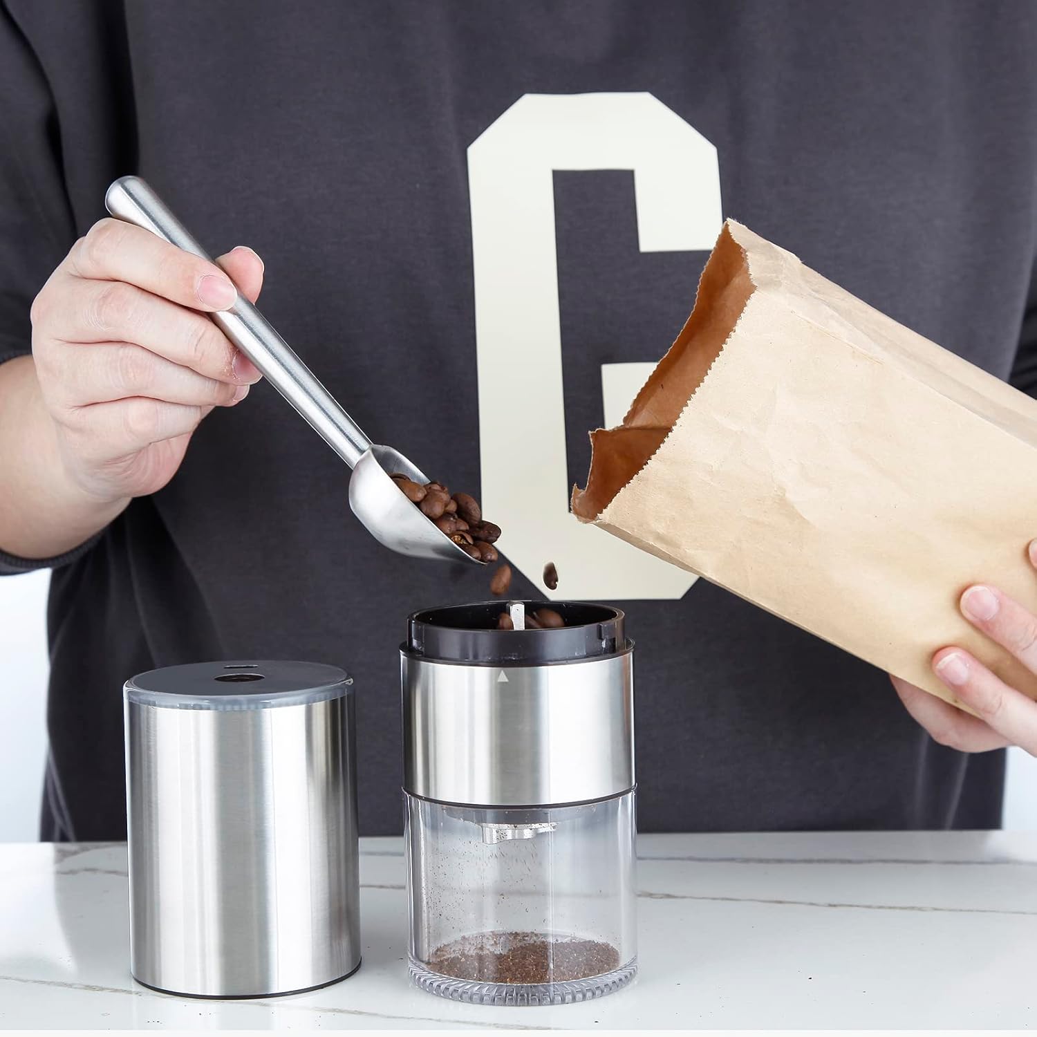 - [Quality & Design] Being made from 304 food grade stainless steel ensures it will never rust, corrode or crack.This unique coffee scoop design and tapered edge makes it easy to measure coffee and tea from the bag.