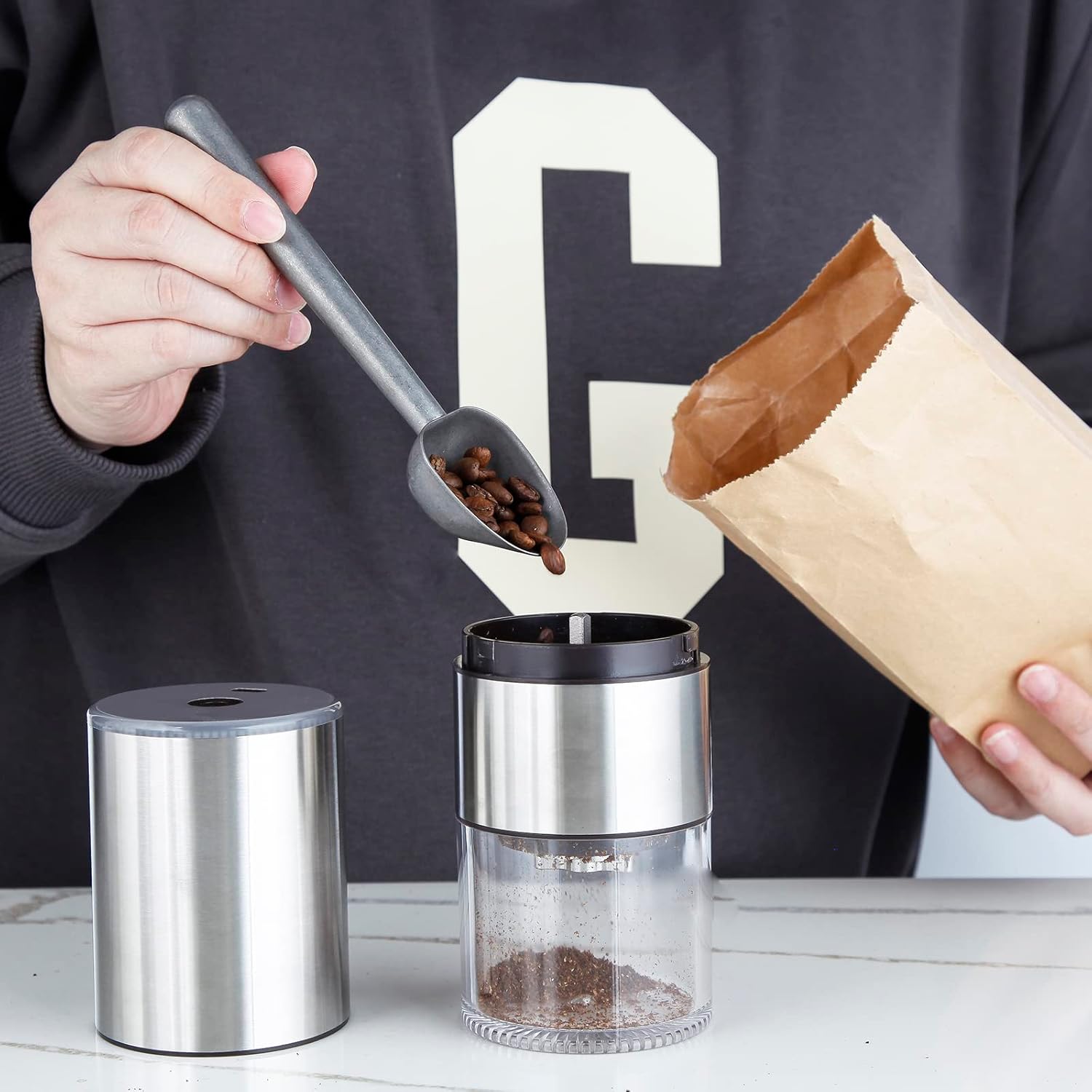 - [Quality & Design]Being made from 304 food grade stainless steel ensures it will never rust, corrode or crack and polished to perfection with a beautiful vintage color. This unique coffee scoop design and tapered edge makes it easy to measure coffee and tea from the bag.