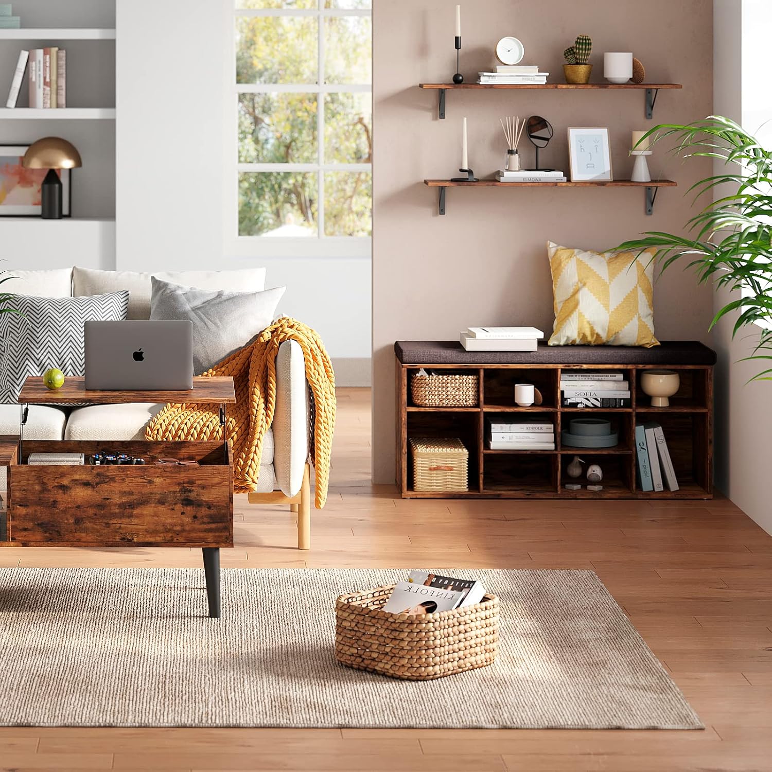 DINZI LVJ Long Wall Shelves, Set of 4, 39.4Inch Wall Mounted Shelves, Extra Large Wall Storage Ledges with Sturdy Metal Brackets for Living Room, Bathroom, Bedroom, Kitchen, Rustic Brown