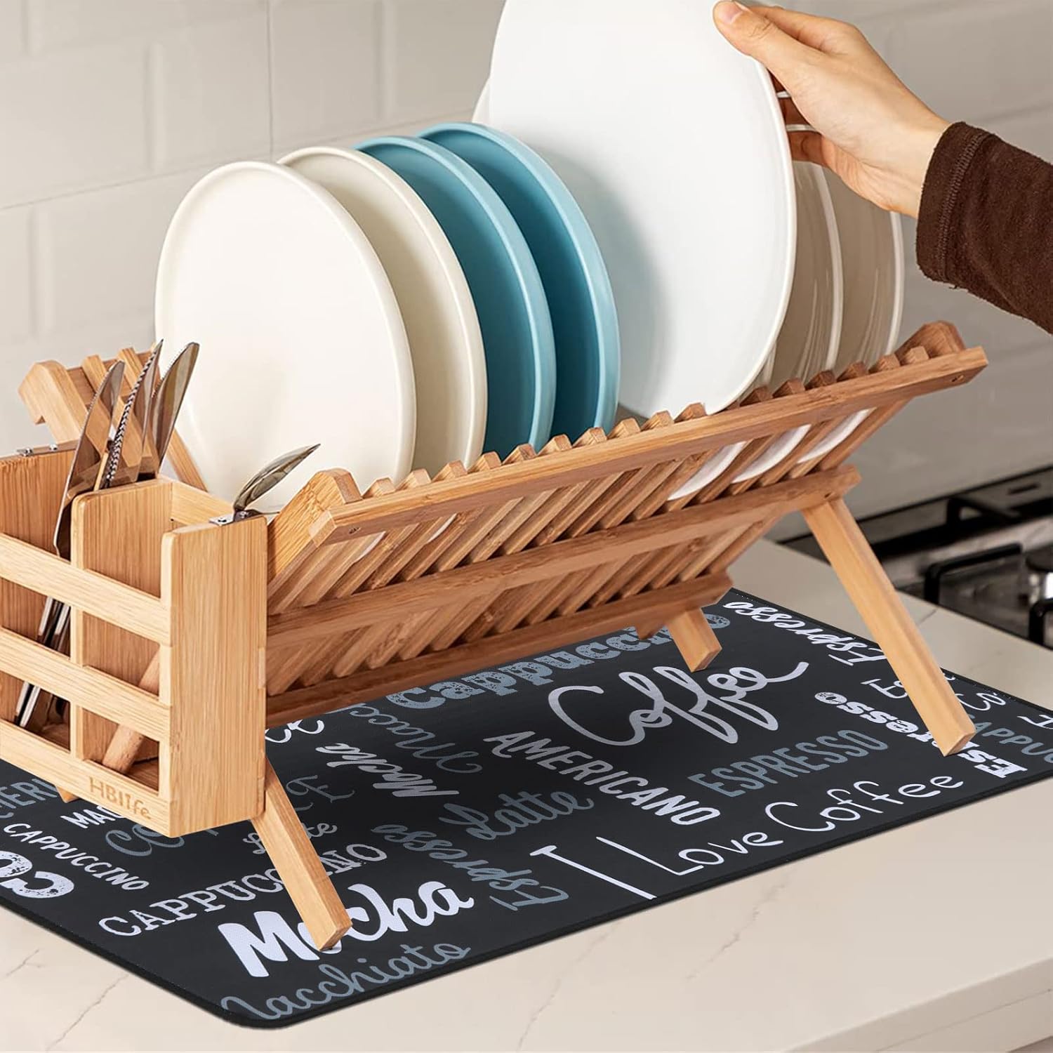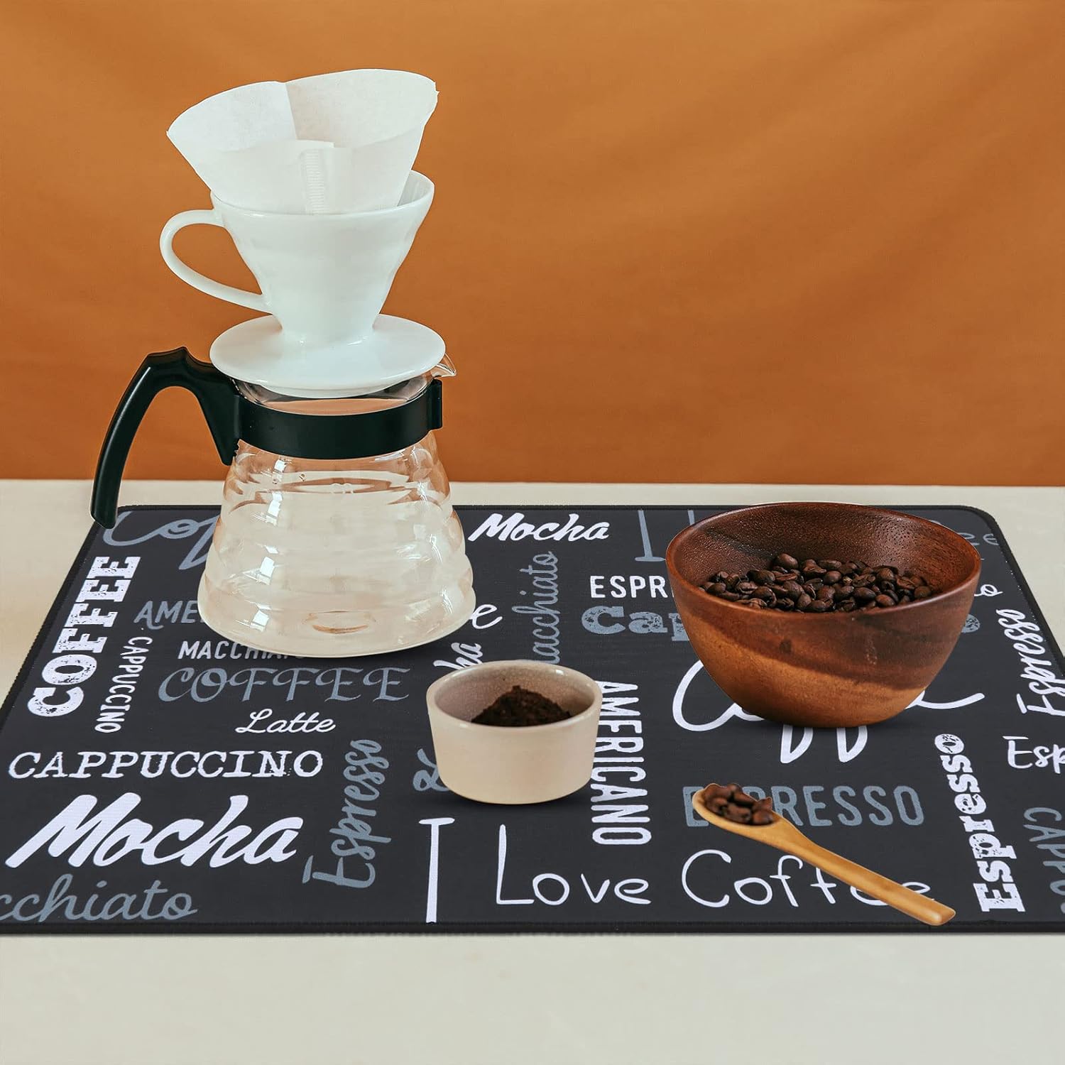 - Easy to clean: The coffee bar mats for countertop has no need to clean frequently. They can be cleaned with soap to remove stains, and then dried and reused. But do not bleach