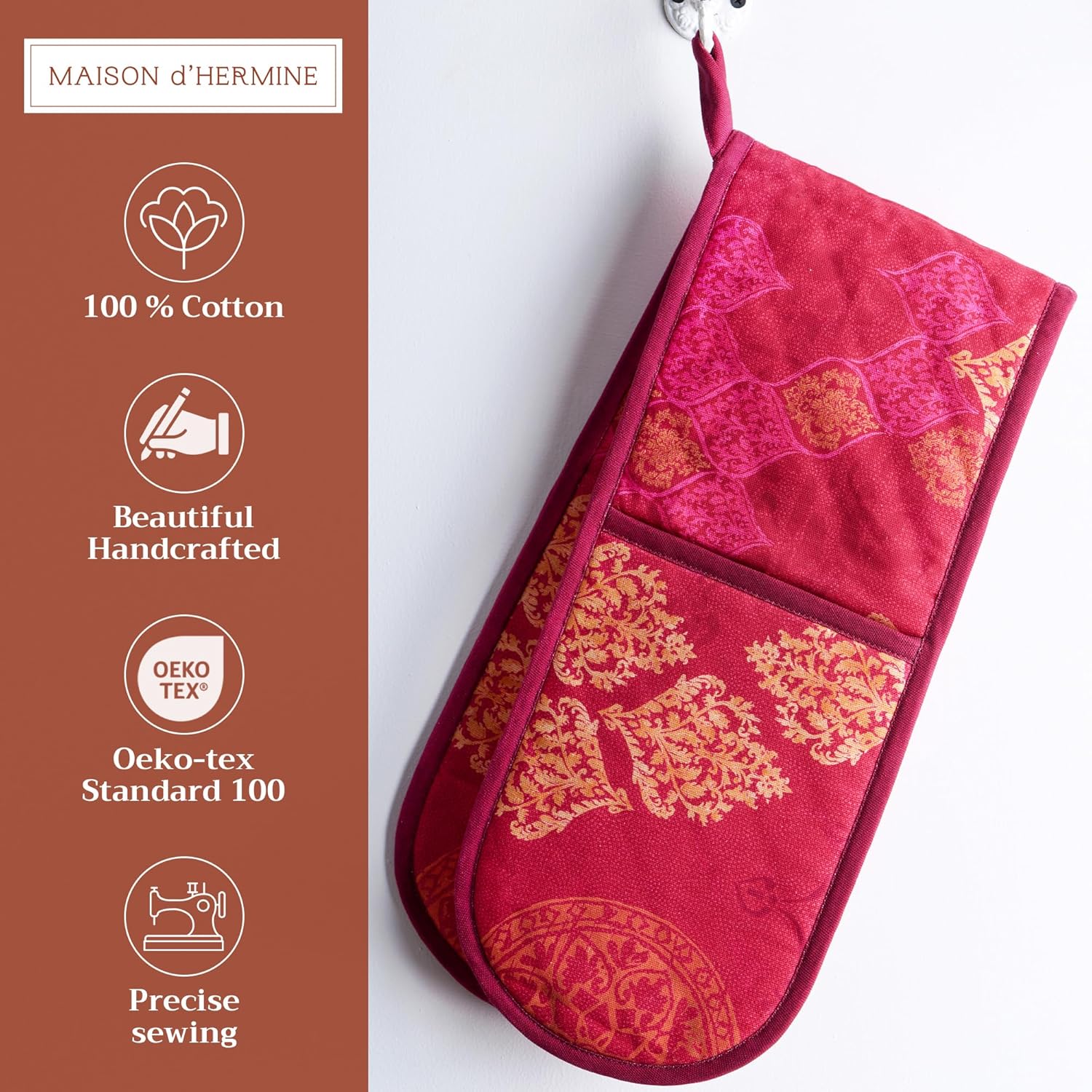 Maison d' Hermine Double Oven Mitts 100% Cotton 7"x35" Double Oven Mitt Heat Resistant BBQ Cooking Gloves with Loop, Baking, Grilling, Home, Kitchen, Handling Hot Pans (Versailles)