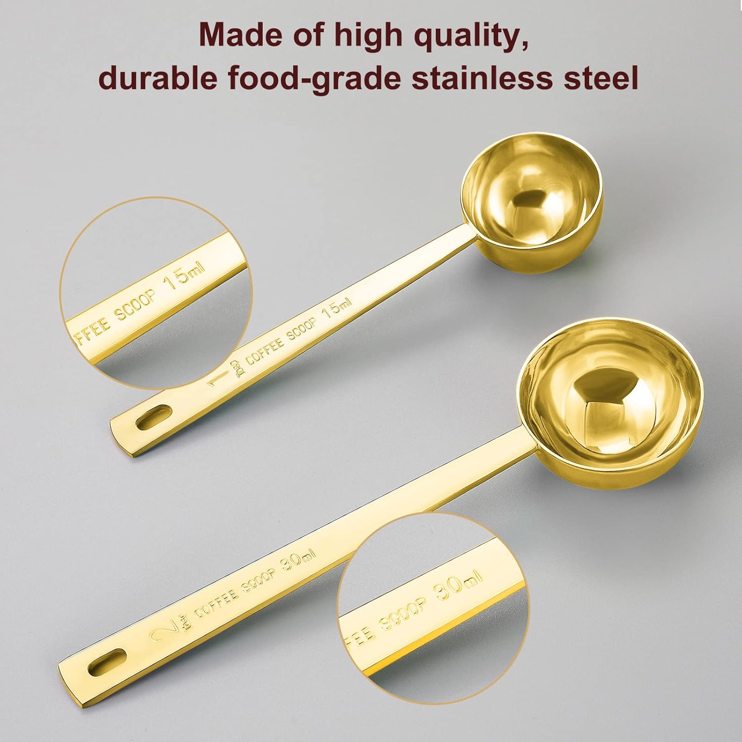 Premium Coffee Scoop Set, Set of 2, Metal Stainless Steel Long Handle Coffee Scoop, Measuring Coffee Spoons Contains 1 Tablespoon (15 ml) and 2 Tablespoons (30 ml) Spoon-Gold