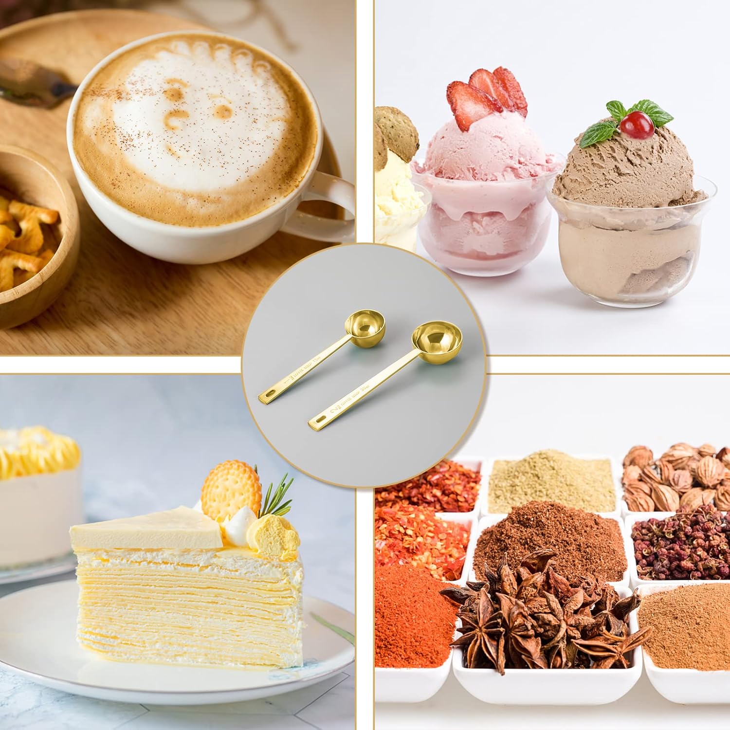 - 【Excellent quality】Our coffee spoons are made of high quality, durable food grade stainless steel that won't bend, rust or break, and the gold looks very premium.