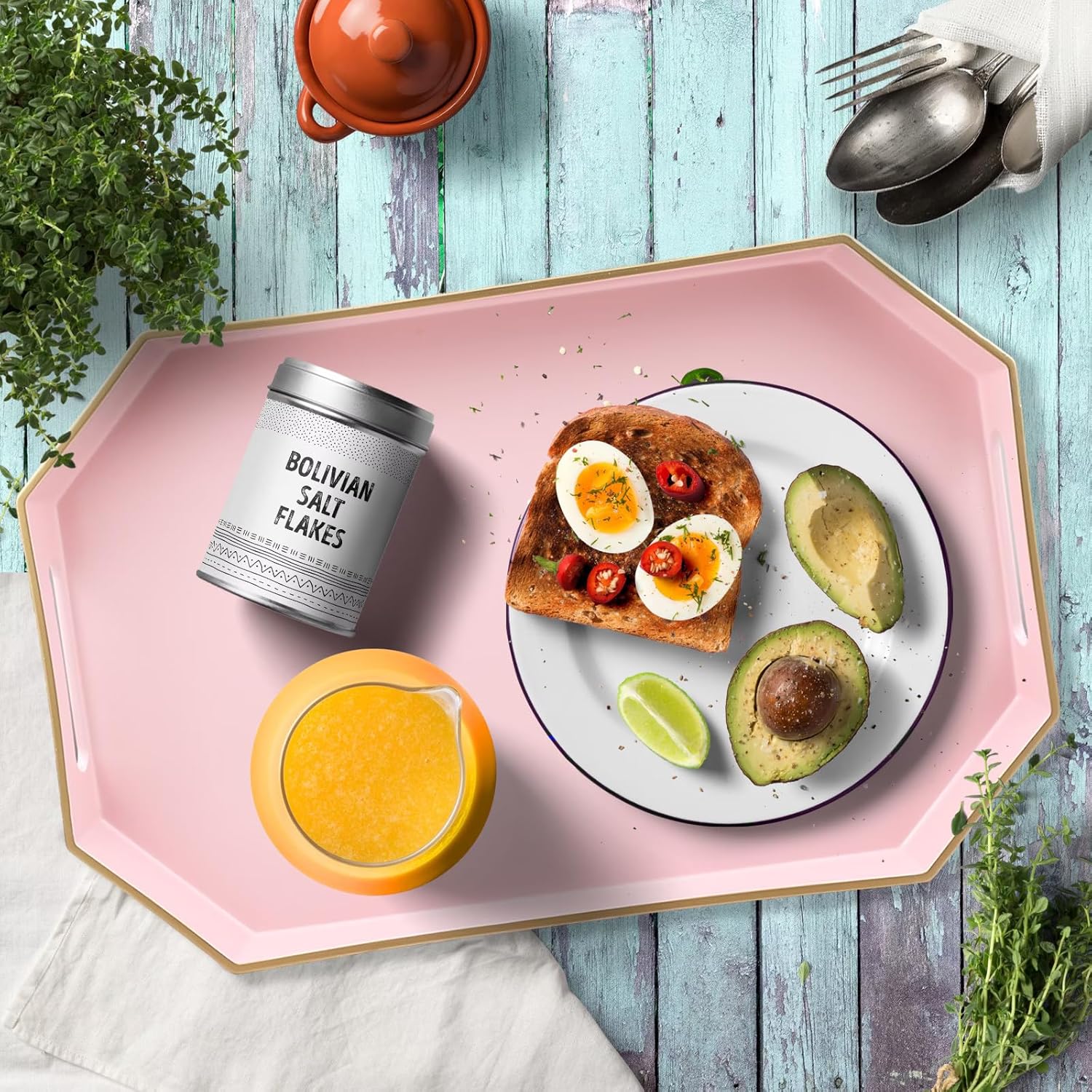 Pink Decorative Tray with Handles, Versatile Serving Tray for Coffee Table, Ottoman, Ideal for Serving, Displaying, Organizing, 15.7"*10.2"*1.57"