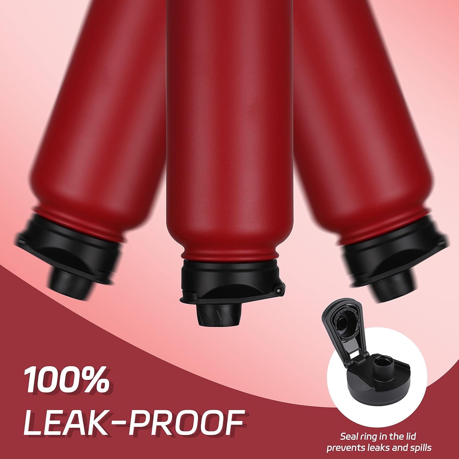 HASLE OUTFITTERS 40oz Stainless Steel Water Bottle, Vacuum Insulated Double Walled Leak Proof Sports Water Bottle with 2 Lids (Straw and Spout Lid) Thermo Mug Keep Cold and Hot(Red,1)