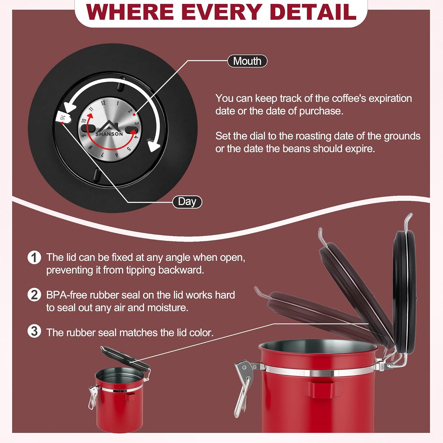 - 【BUILT-IN DATE TRACKER】A simple yet incredibly useful feature! The date tracker lets you monitor when the canister was last filled, helping prevent your coffee from going stale unnoticed. A stainless steel scoop is conveniently attached to the side, so you’re never left searching for a measuring spoon. Features a superior airtight seal for maximum freshness.