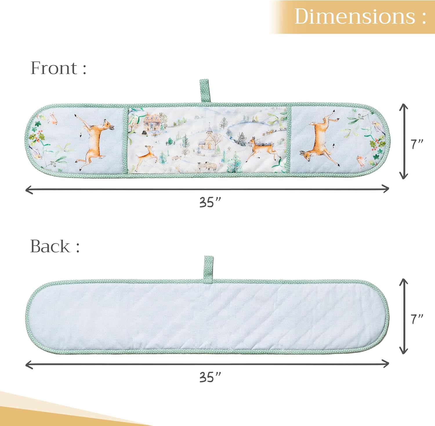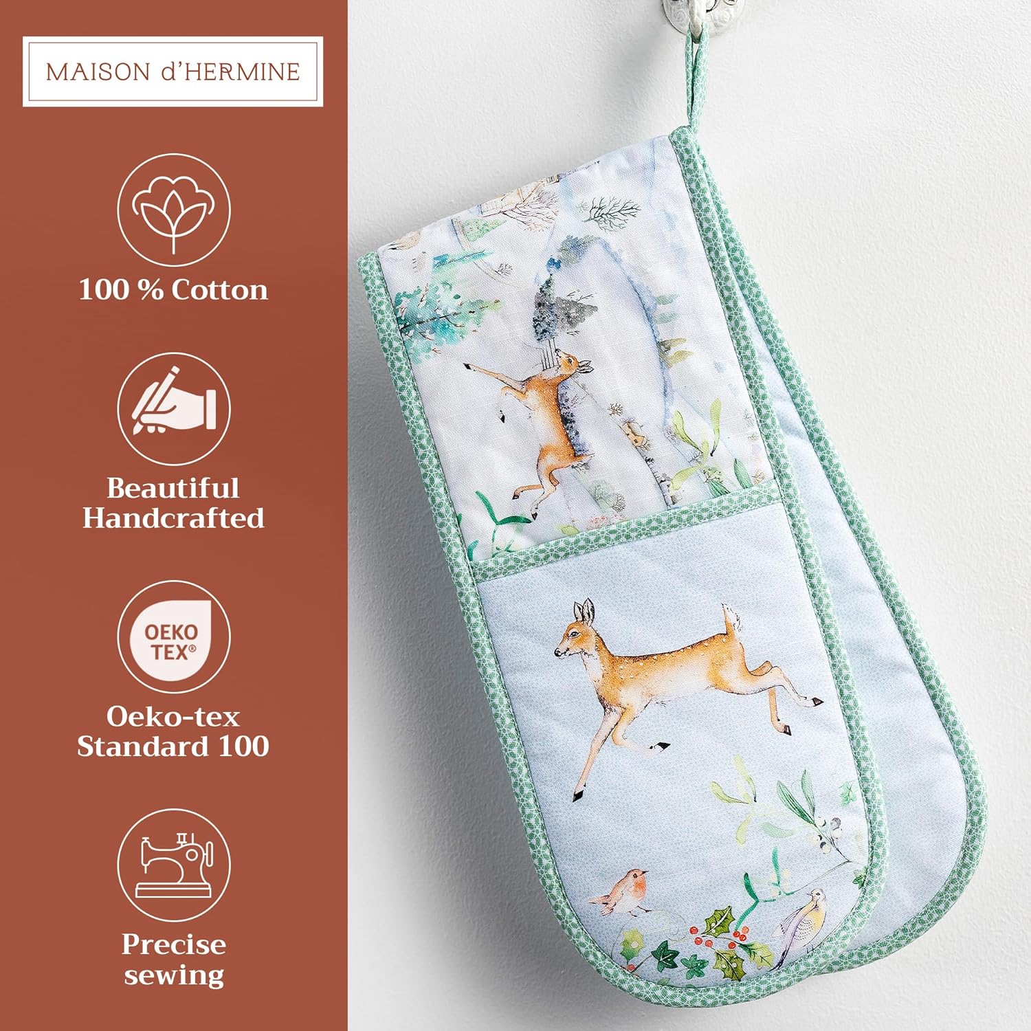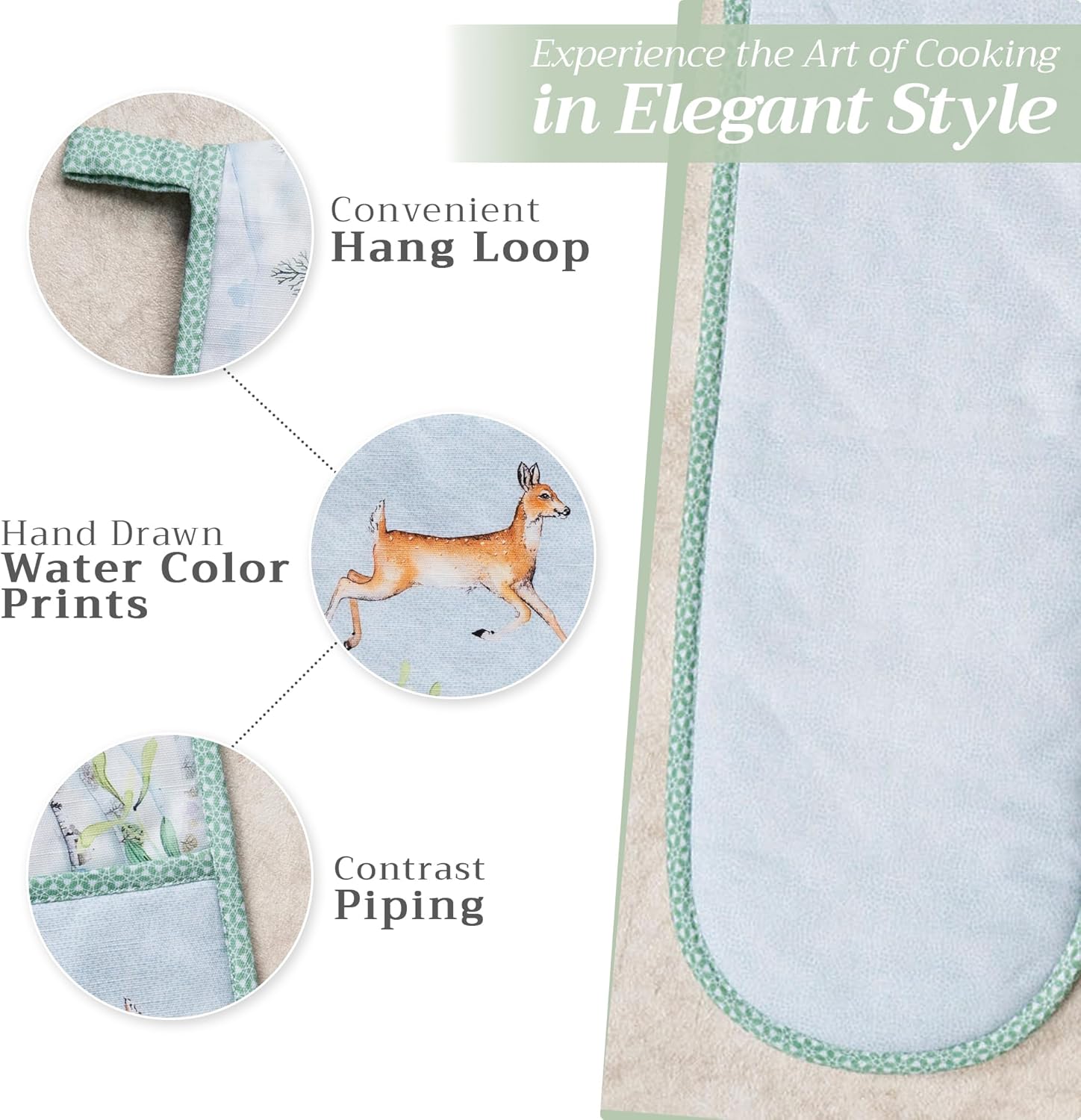 - Package includes: Includes 1 double oven mitt sized 7"x35". Perfect for handling hot cookware safely while adding a touch of European elegance to your kitchen. Designed in Europe and made in India with care