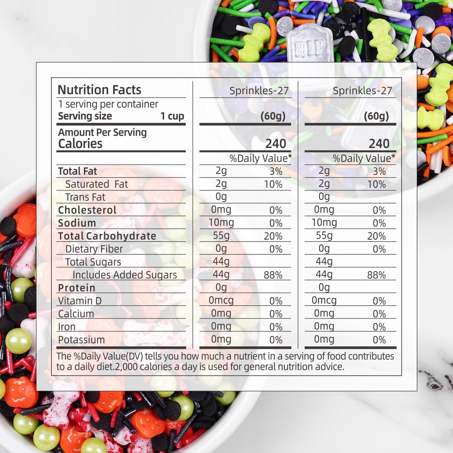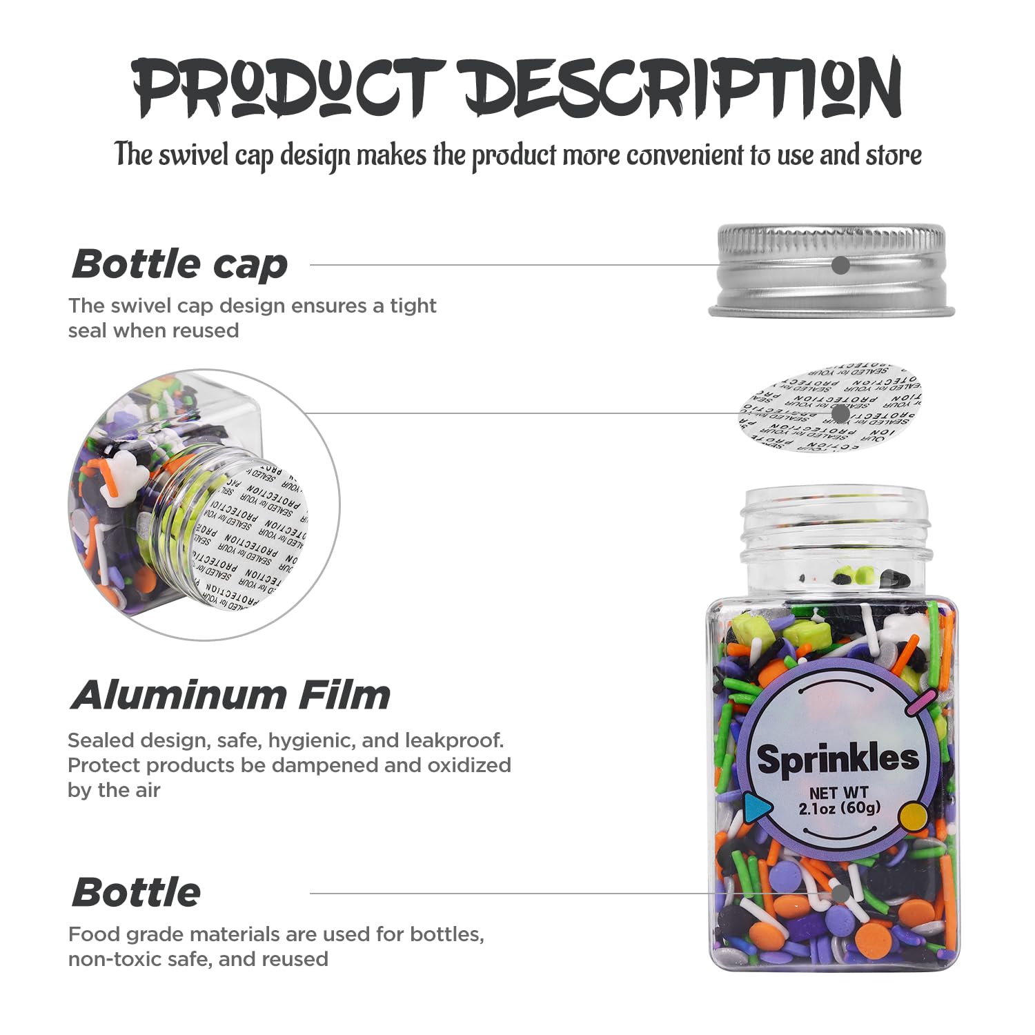 - Use and Store: Please use tweezers or spoons to place edible halloween sprinkles on the dessert. Please use them as soon as possible when opening. Store it in a cool dry place and avoid direct sunlight