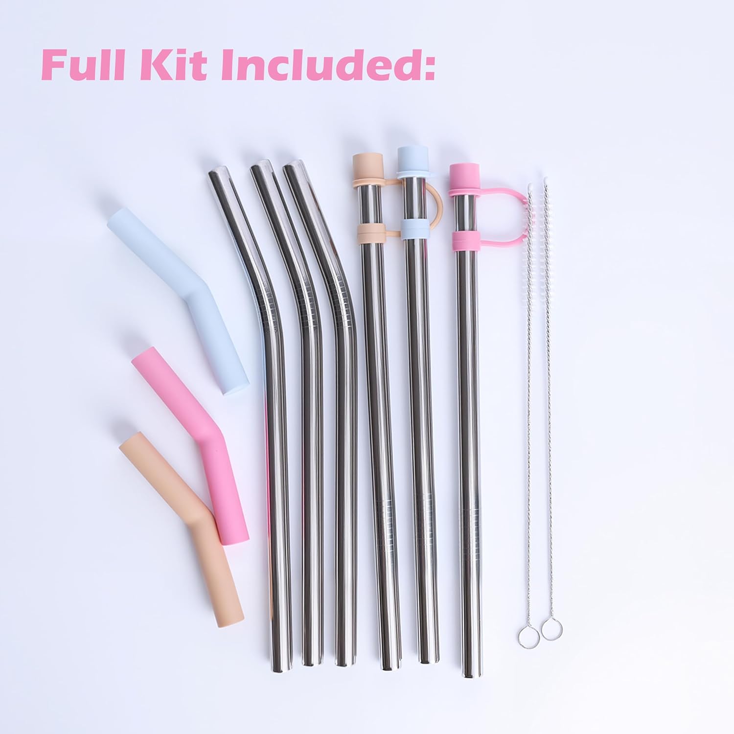 Stainless Steel Straws with covers fit Stanley 14oz & 20oz tumbler, Reusable 8.6 Inch Straw with Silicone Tips & Cover Caps, Compatible with Stanley Quencher H2.0 (6 Pack: 3 Bent + 3 Straight)