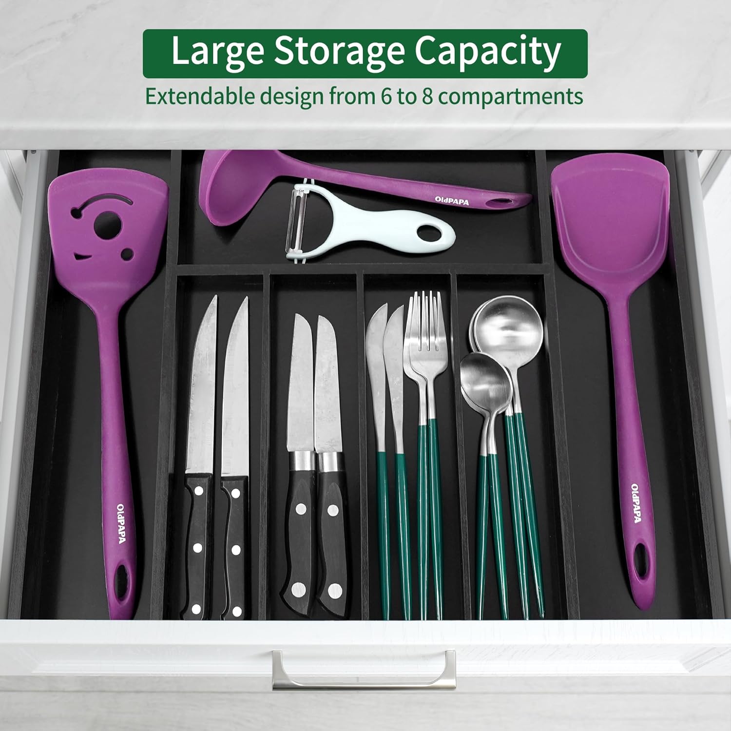 Utoplike Bamboo Silverware Drawer Organizer, Expandable Kitchen Utensils Drawer Organiser, Cutlery Tray Dividers, Flatware Caddy Drawer Insert, Office Supplies, Black 5-7 Slot