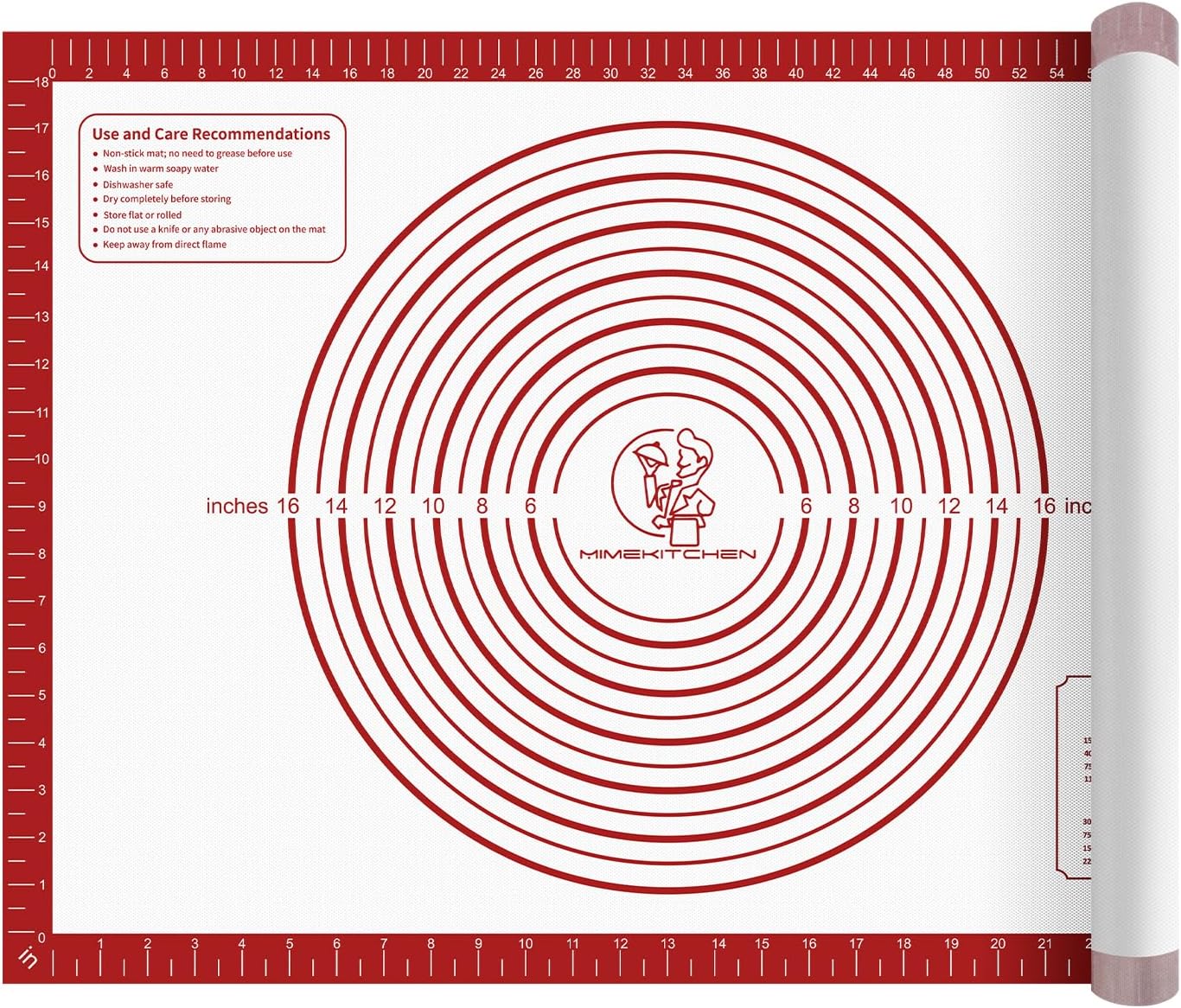 - 【DURABLE SILICONE BAKING MAT】: Mimekitchen pastry mat consists of multi-layers of silicone and fiberglass to reinforce the mat. It won’t rip or roll up at the edges, and very hard to crinkle or slide around as you roll the dough. It is more durable than regular slim pastry sheet.