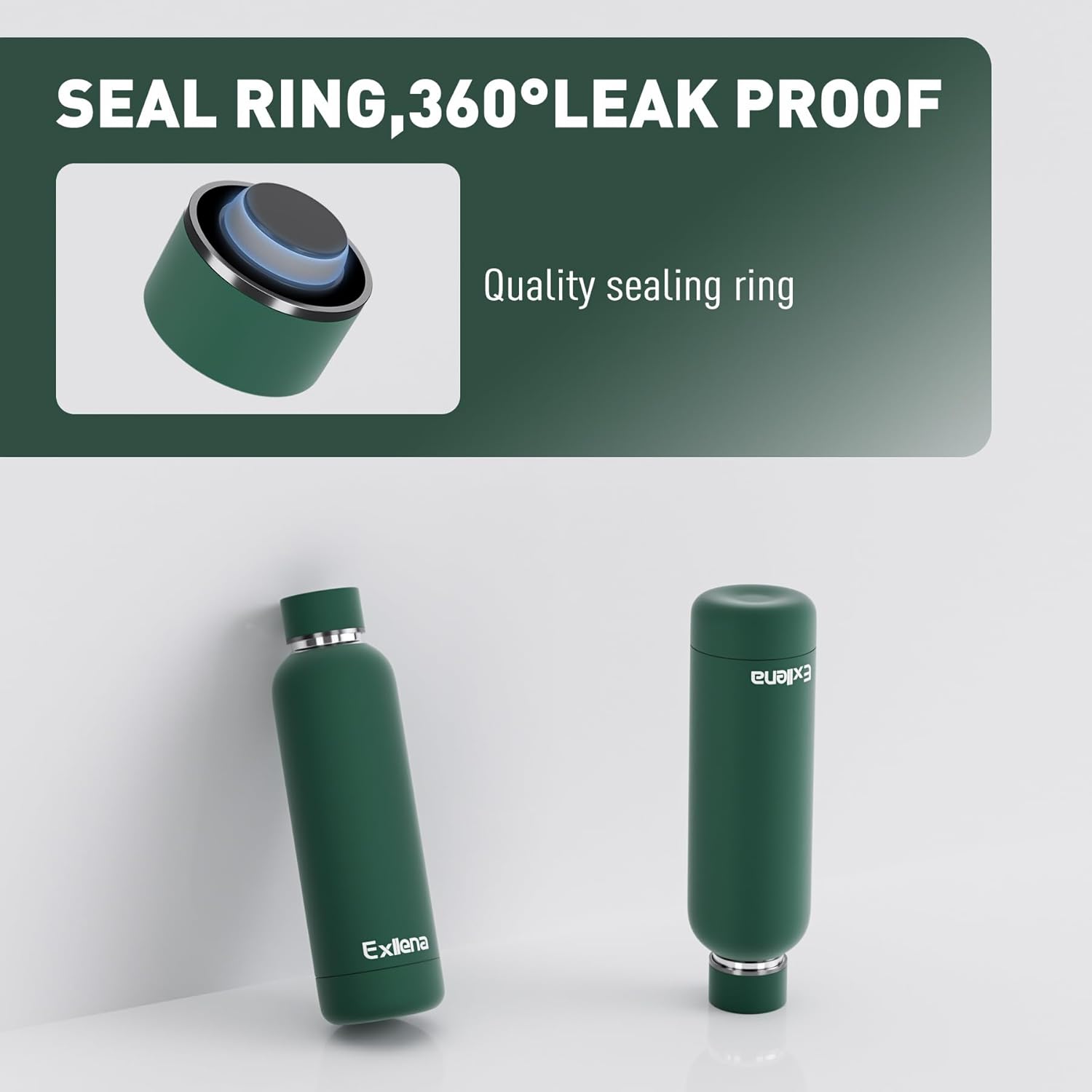 Slim Insulated Water Bottles for Travel 18oz with Clip, Double Wall Vacuum Stainless Steel Water Bottle Keeps Drinks Cold 24 Hrs/Hot 12 Hrs, 100% Leakproof, BPA Free(Emerald Green)