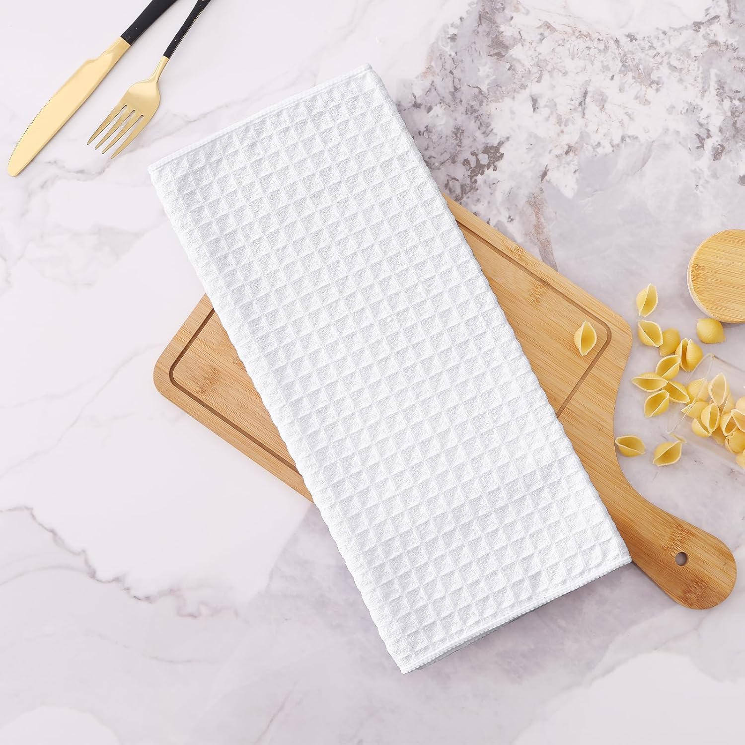Homaxy Microfiber Waffle Weave Kitchen Towels, 16 x 28 Inch Ultra Absorbent and Solid Color Dish Towels, 6 Pack, White