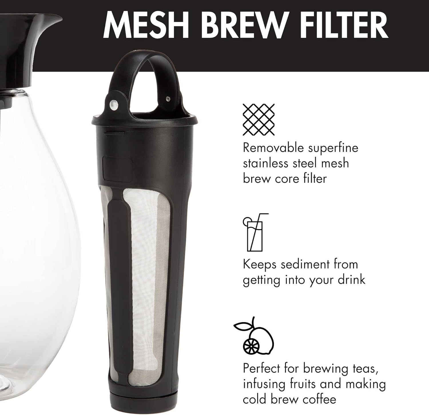 - MULTI-FUNCTIONAL DRINK DISPENSER: Infuse your tea or water with herbs or fruits. The ultra-fine stainless steel mesh filter keeps your drink debris free. Also great for use as a cold brew coffee maker or juice pitcher.