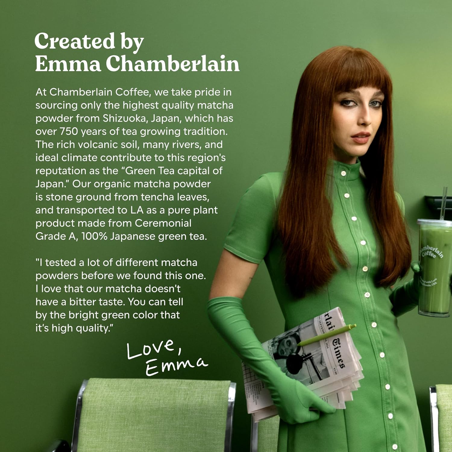 Chamberlain Coffee Chocolate Matcha Green Tea Powder - Rich Cocoa + Ceremonial Grade Matcha - Hot or Iced - Organic, Vegan & Gluten-Free Matcha Powder - 1.06 oz