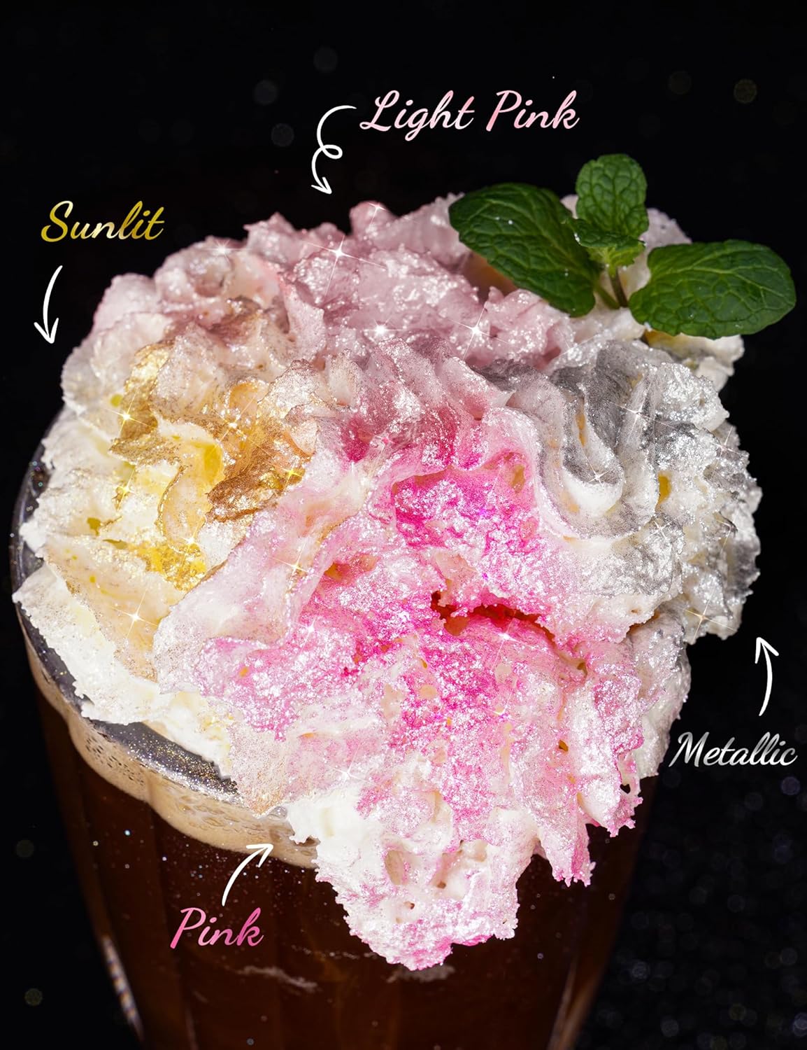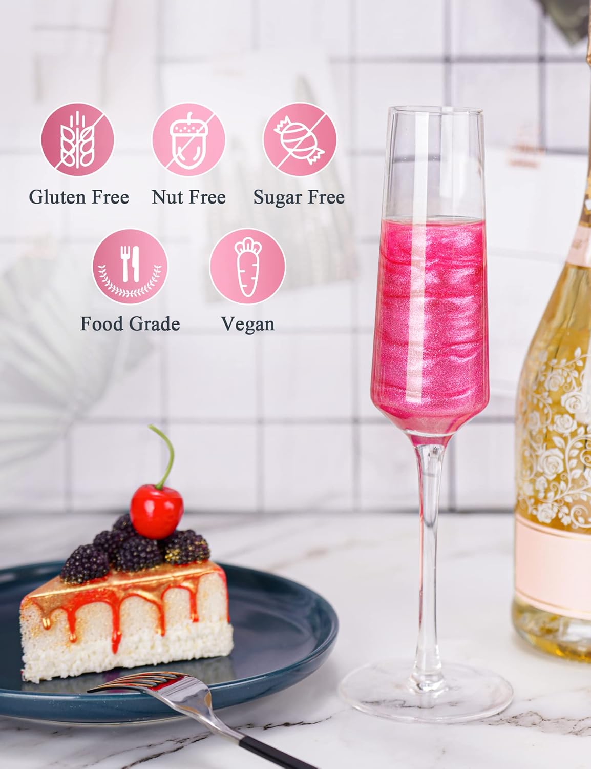 - ✔️ Multiple Applications: This versatile product can be used to enhance the appearance of various foods, including wine, cocktails, champagne, desserts like candies, cakes, cupcakes, chocolate, cookies, and more. It adds vibrant colors to your dishes, making them visually appealing and appetizing.