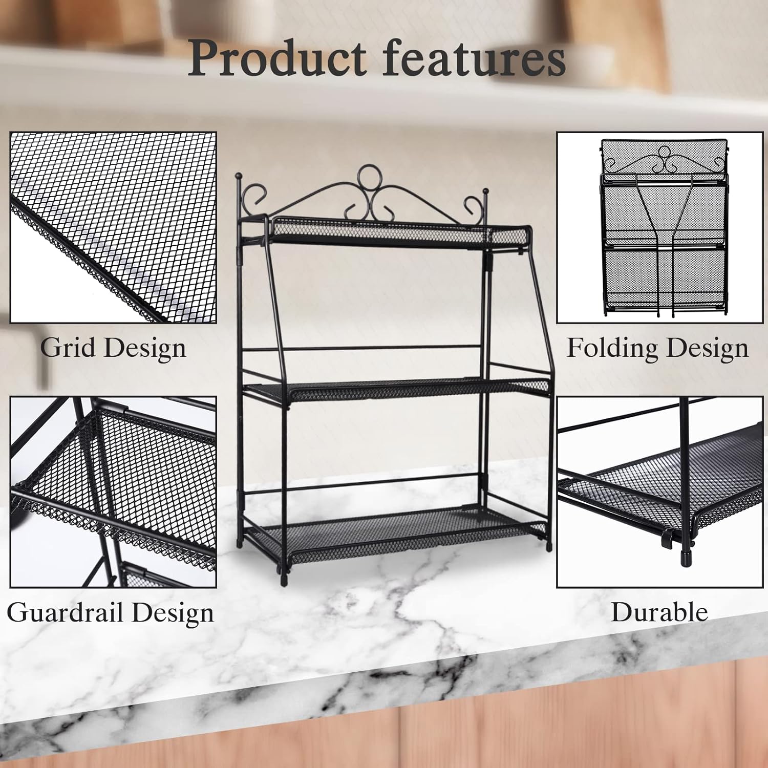 Uten Standing Spice Rack 3 Tier Metal Foldable and Durable Kitchen Rack for Countertop Kitchen Bathroom, Shelf Organizer, Standing Stainless Steel Tiered Shelf