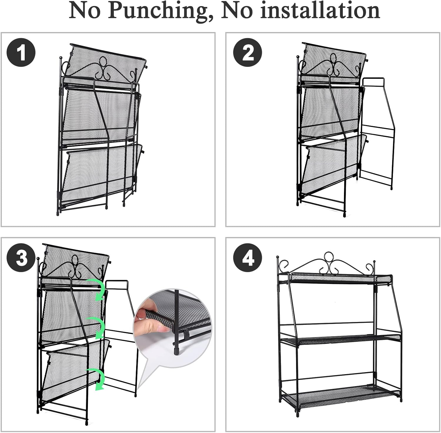 - 【Simple and Efficient】The special thing about this standing spice rack is that you can use it immediately, no installation is required. It was born to save space! Foldable design for instant storage when not in use without wasting space. Hanging on the wall is also an option if you prefer