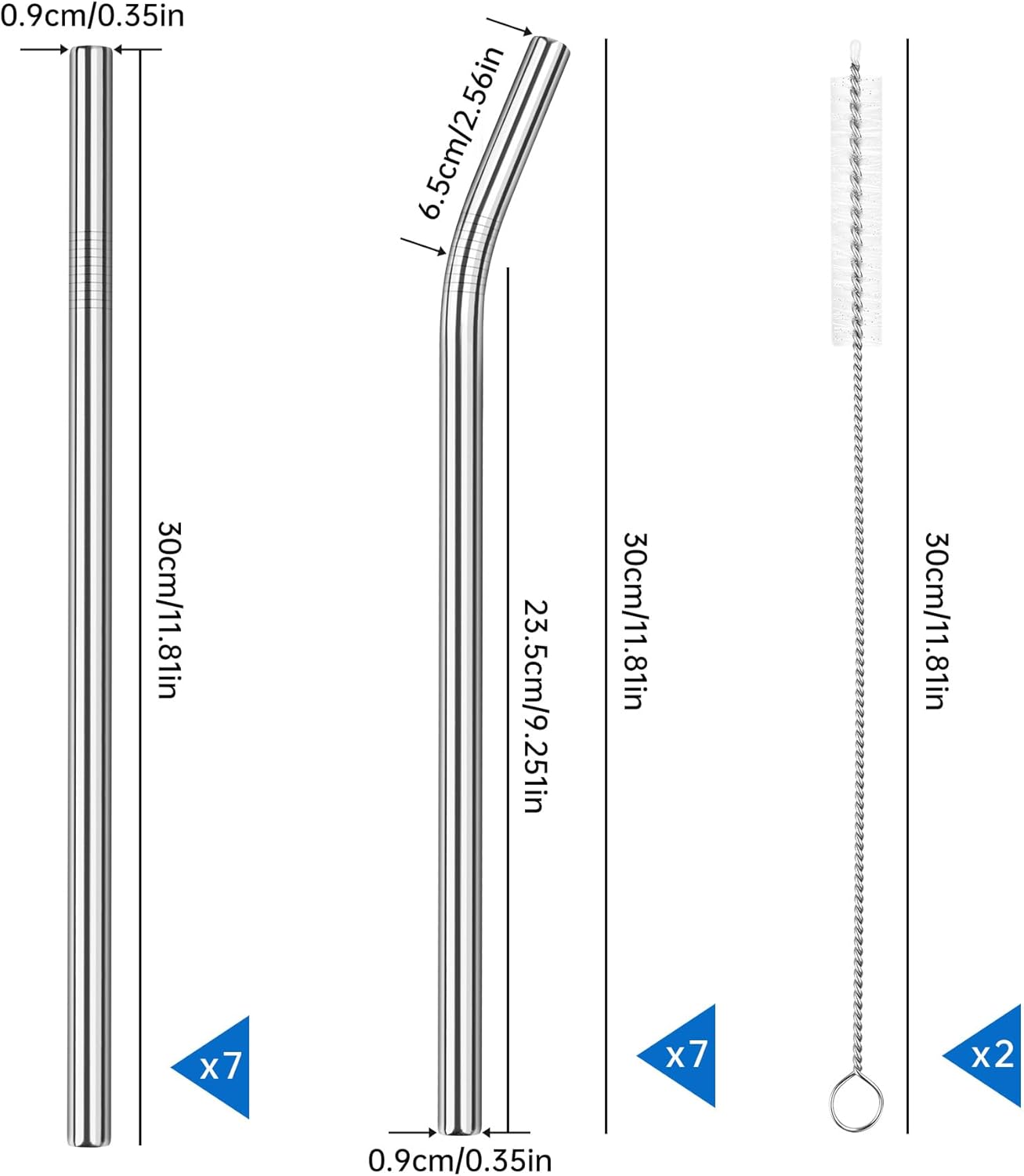 - 🍹 Exceptional Value Set - This fantastic package includes 7 straight straws (11.8" x 0.35"), 7 curved straws (11.8" x 0.35"), complemented by 2 additional extra-long cleaning brushes. Offering superior convenience and practicality, this set is a must-have for any household.