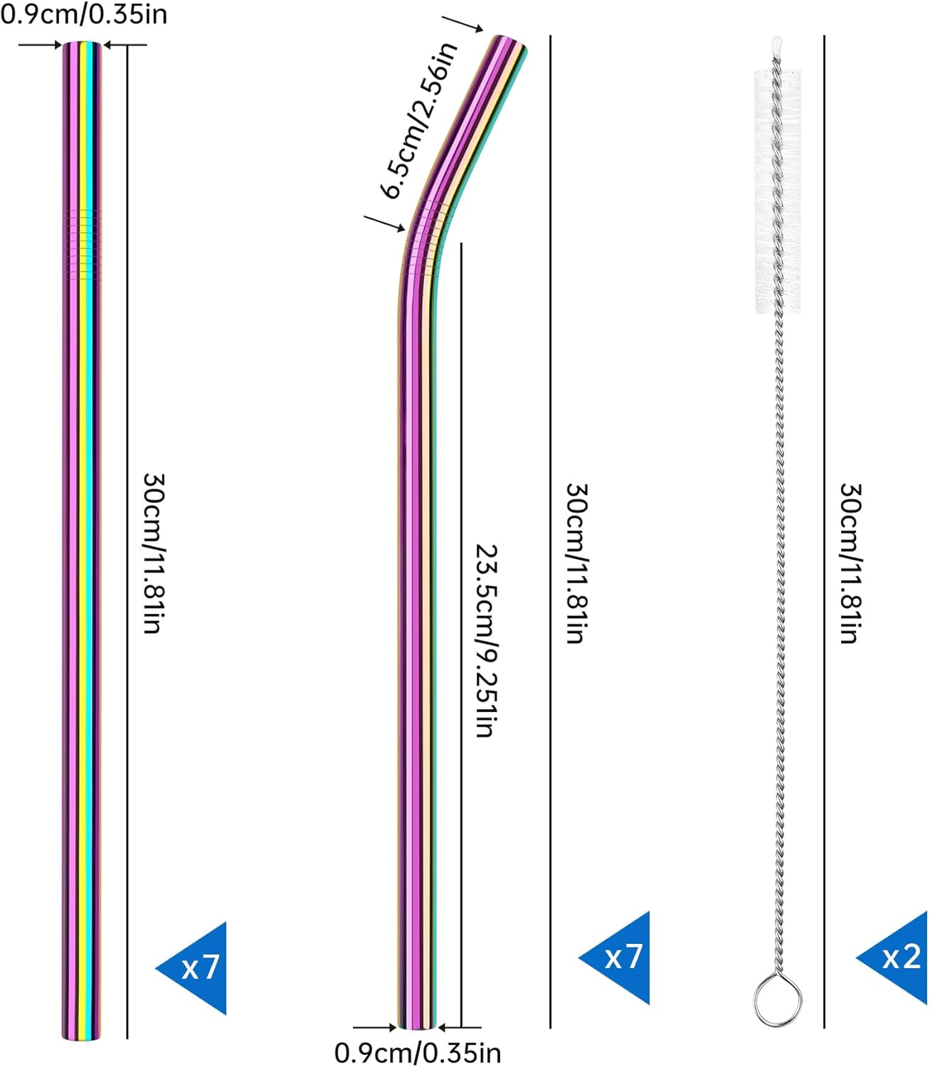 - 🍹 Exceptional Value Set - This fantastic package includes 7 straight straws (11.8" x 0.35"), 7 curved straws (11.8" x 0.35"), complemented by 2 additional extra-long cleaning brushes. Offering superior convenience and practicality, this set is a must-have for any household.