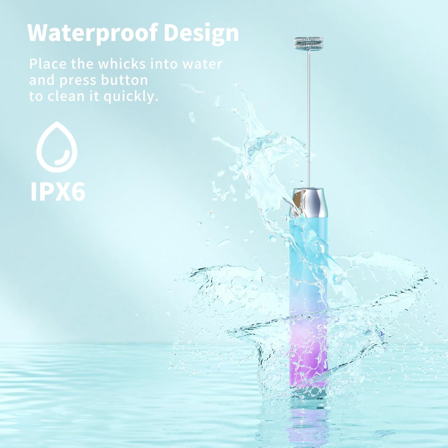 - One-button Operated Design: One press to start the whisking and another press to stop frothing. Just place the LunaFro handheld milk frother’s whisk into the container with milk or other liquid food, then press the button to make milk foam, and press the button again to stop working. It’s effortless to clean. Only put the mixing head into water or soapy water, and then press the button to let eddy water current clean it completely.