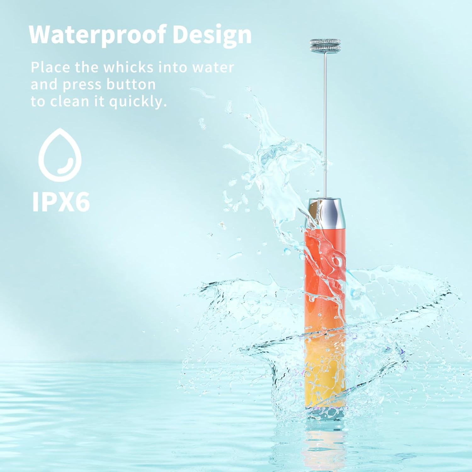 - One-button Operated Design: One press to start the whisking and another press to stop frothing. Just place the LunaFro handheld milk frother’s whisk into the container with milk or other liquid food, then press the button to make milk foam, and press the button again to stop working. It’s effortless to clean. Only put the mixing head into water or soapy water, and then press the button to let eddy water current clean it completely.