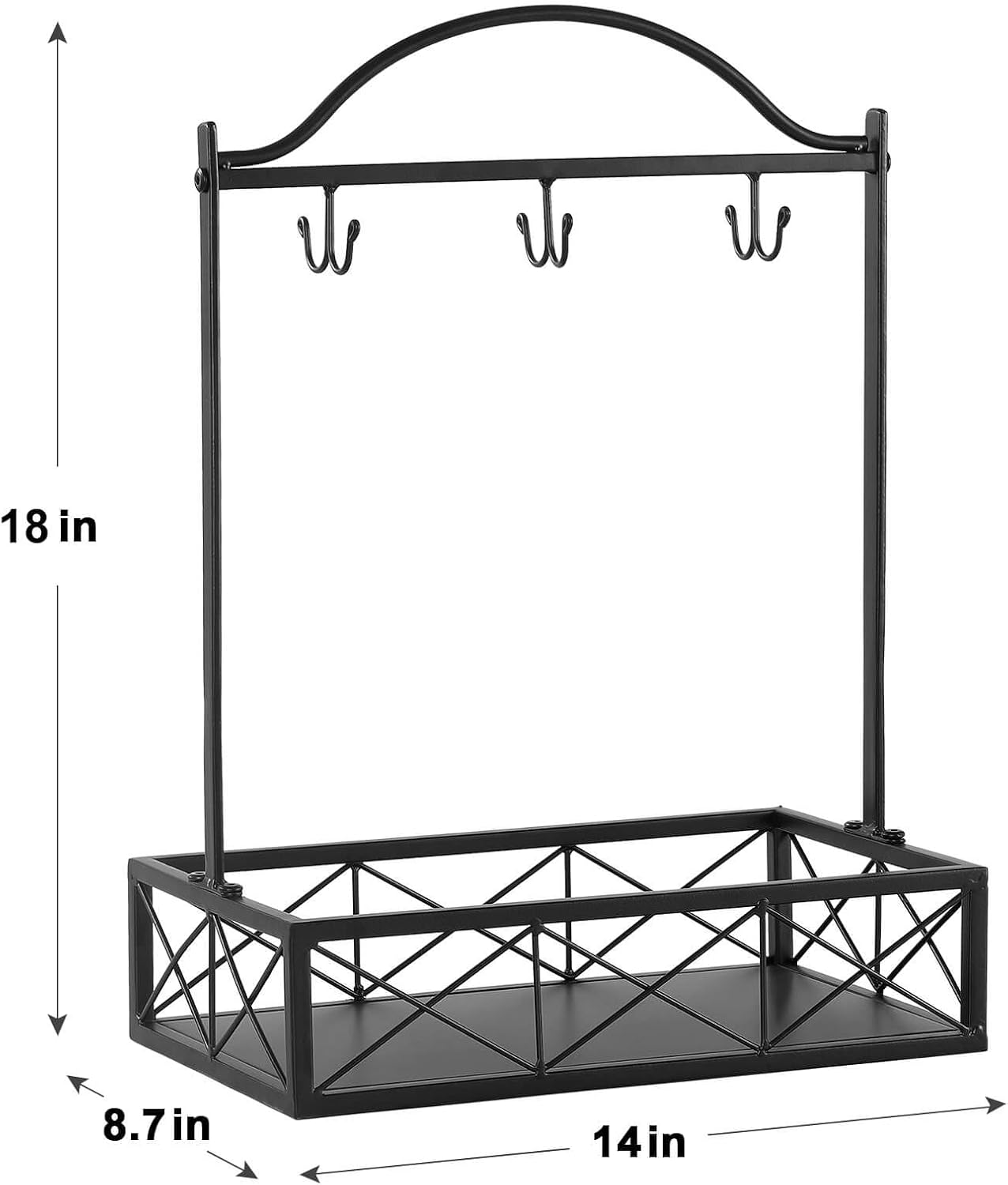 - 【Mug holder Size】 The size is 14"Lx8.7"Wx18"H ,the mug tree is large enough to hold your coffee ceramic mugs,coffee pods,sugar, creamer, tea bags,cookie Snacks,coffee bar accessories.