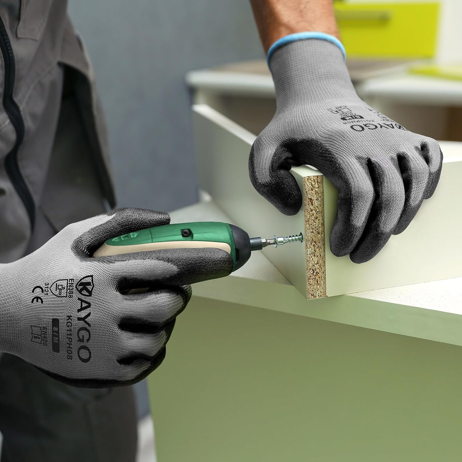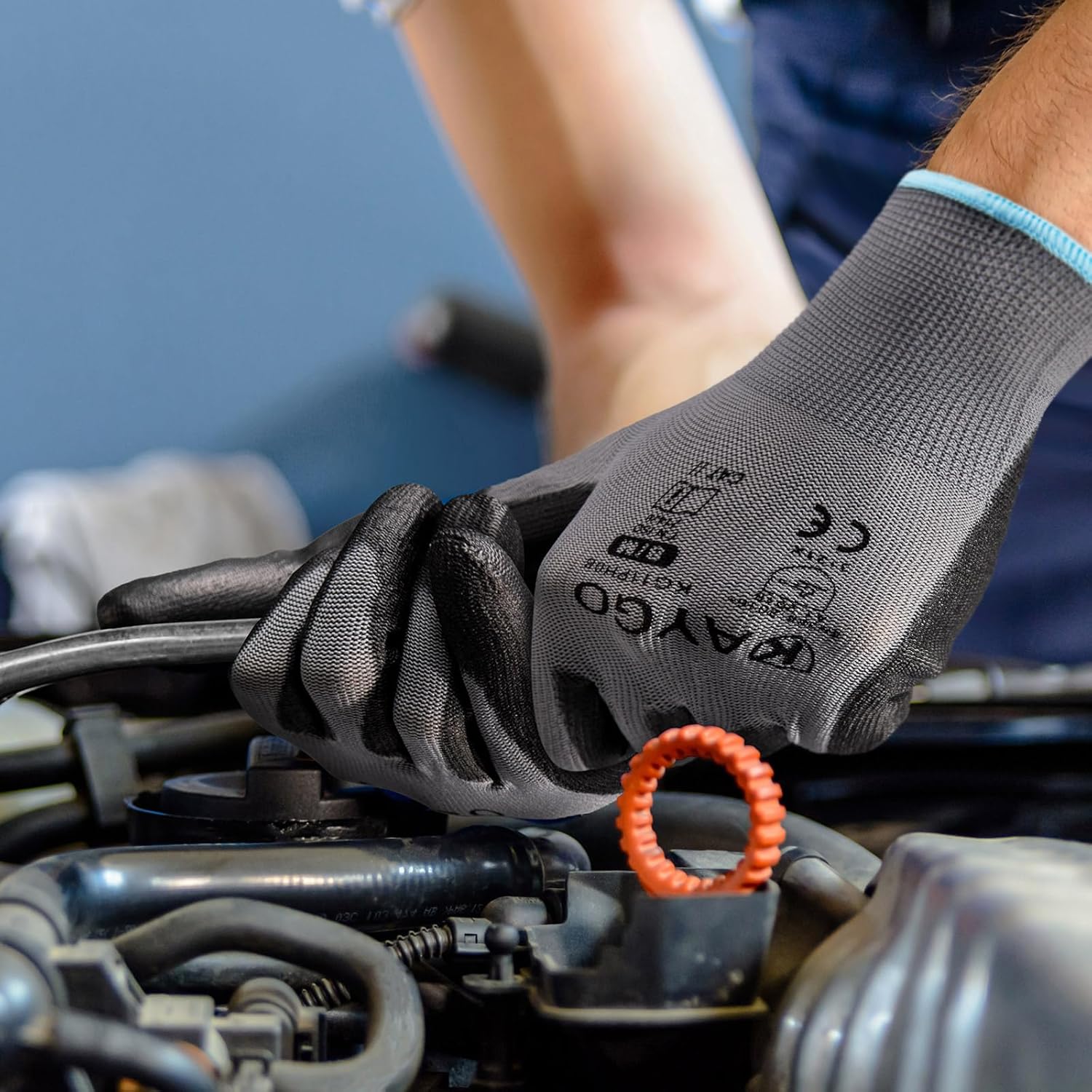- Excellent Abrasion Resistance: The polyurethane-coated palms and fingertips provide a secure grip in dry and slightly wet/oily conditions while maintaining high dexterity and tactile sensitivity, making them ideal for precise tasks