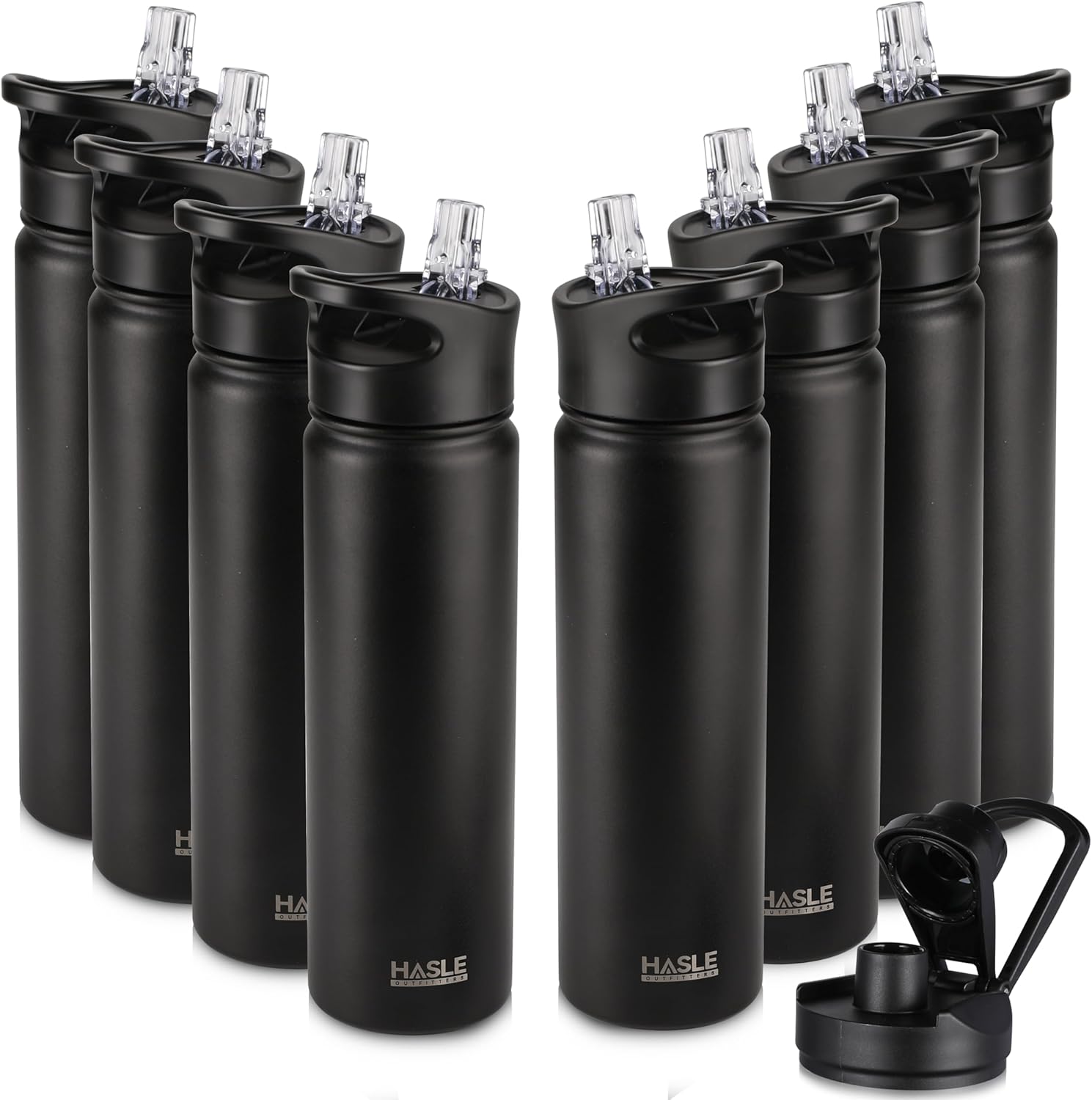 HASLE OUTFITTERS Insulated Water Bottle 22 oz Double Wall Stainless Steel Water Bottle Wide Mouth with Straw Lid & Spout Lid Keeps Cold or Hot(Black,8)