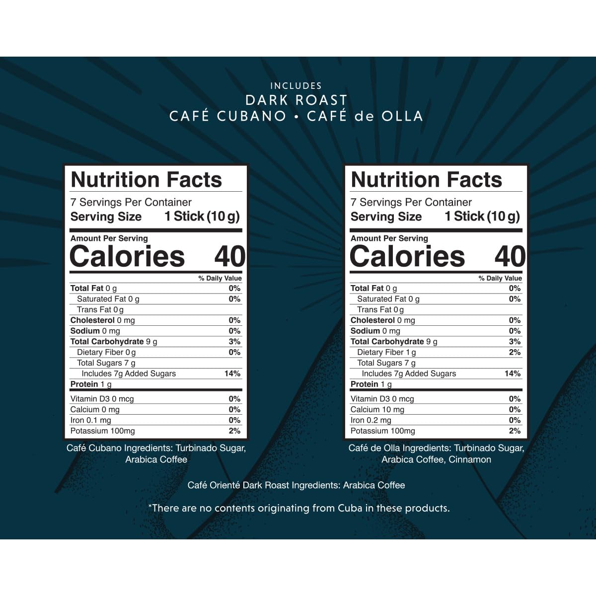 - [Flavorful Oriente Instant Coffee Variety Pack]: Oriente Coffee Variety Pack combines three of our most popular instant coffee packets. Enjoy Bold Cafe Oriente, Sweetened Espresso Cafe Cubano, and Cinnamon Cafe De Olla.