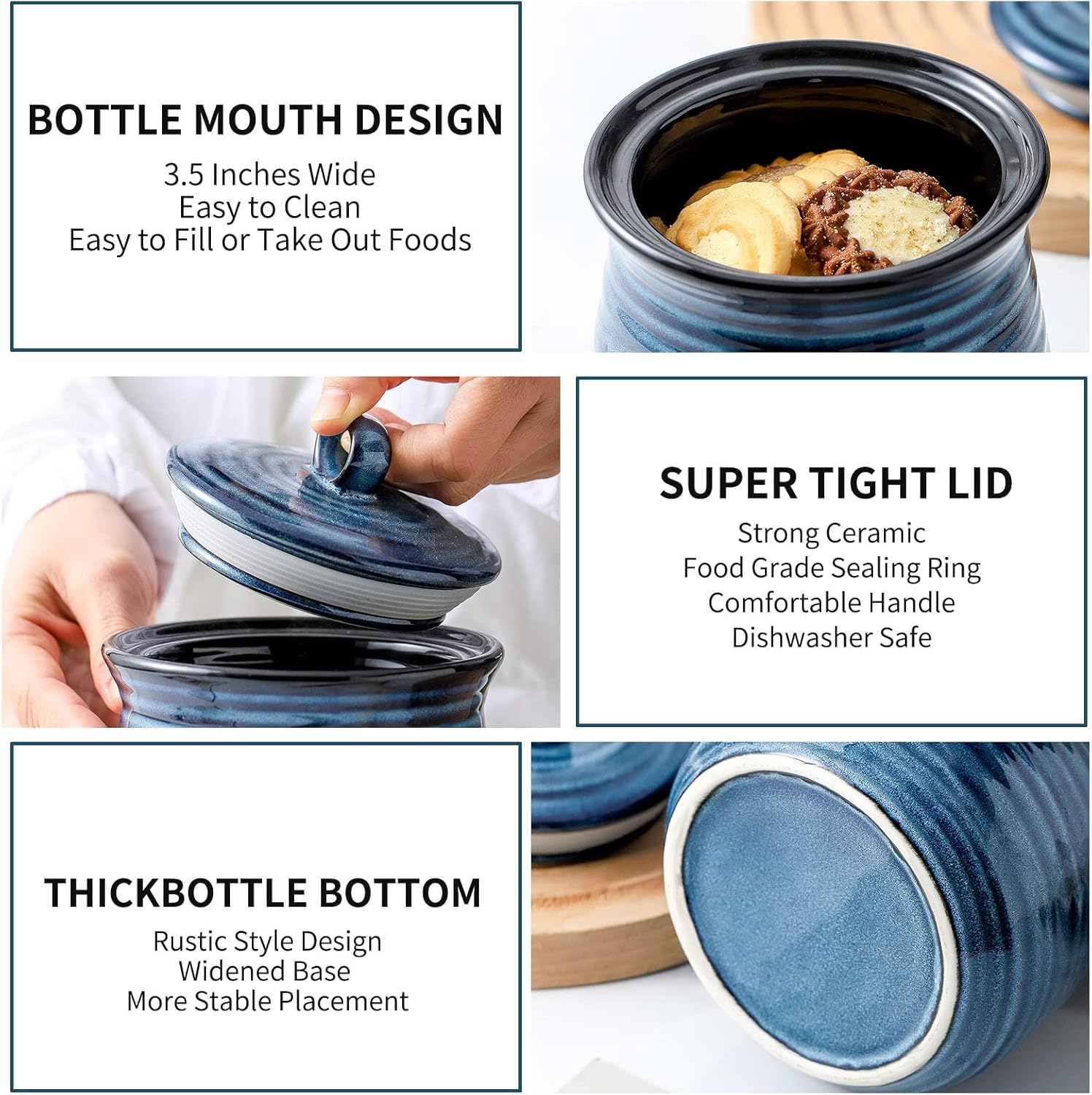 Ceramic Kitchen Canister, Large Food Storage Jar with Aritight Lid for Coffee,Tea,Sugar,Flour,Cookie,Candy,Cereal,Dog Treat, 35 oz Coffee Canister for Kitchen Countertop, Blue