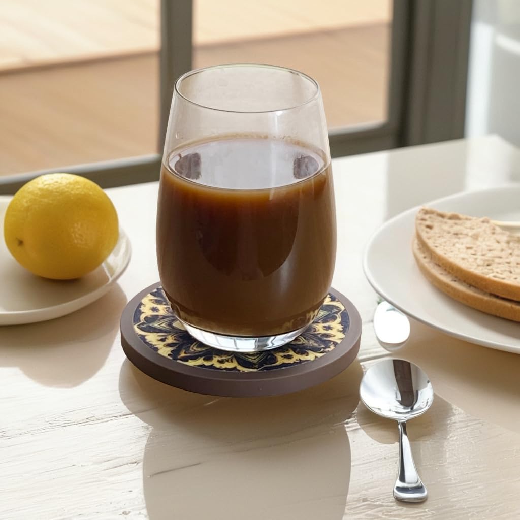 Absorbent Coasters for Drinks with Holder - 6packs, Silicone Coaster with Soft Felt Insert (4.3 inch Coasters with 4.5 inch Holder, Dual-Sided Mandala -Themed Patterns)