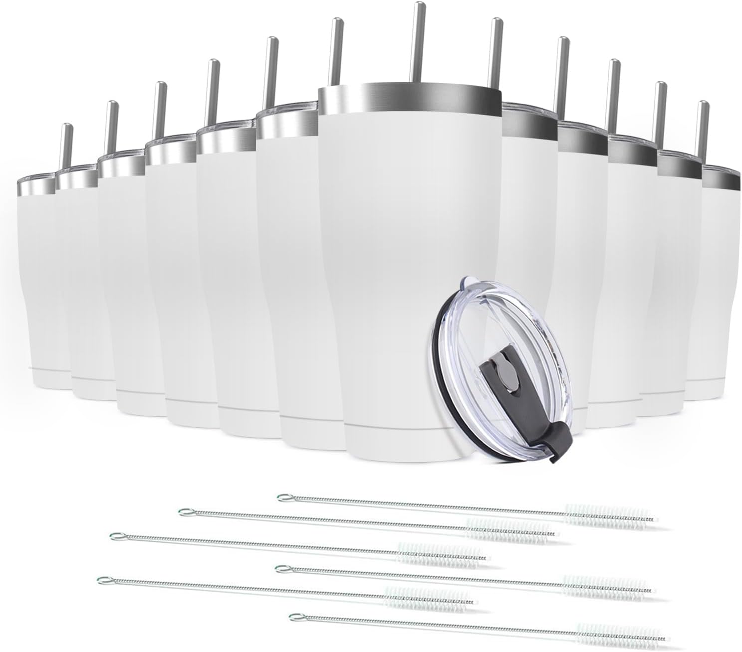 12 Pack 20oz Stainless Steel Tumblers Bulk Reusable Travel Mugs with Lid, Double Wall Powder Coated Coffe Cup for Home, Office, Outdoor Suitable for Vehicle Cup Holders