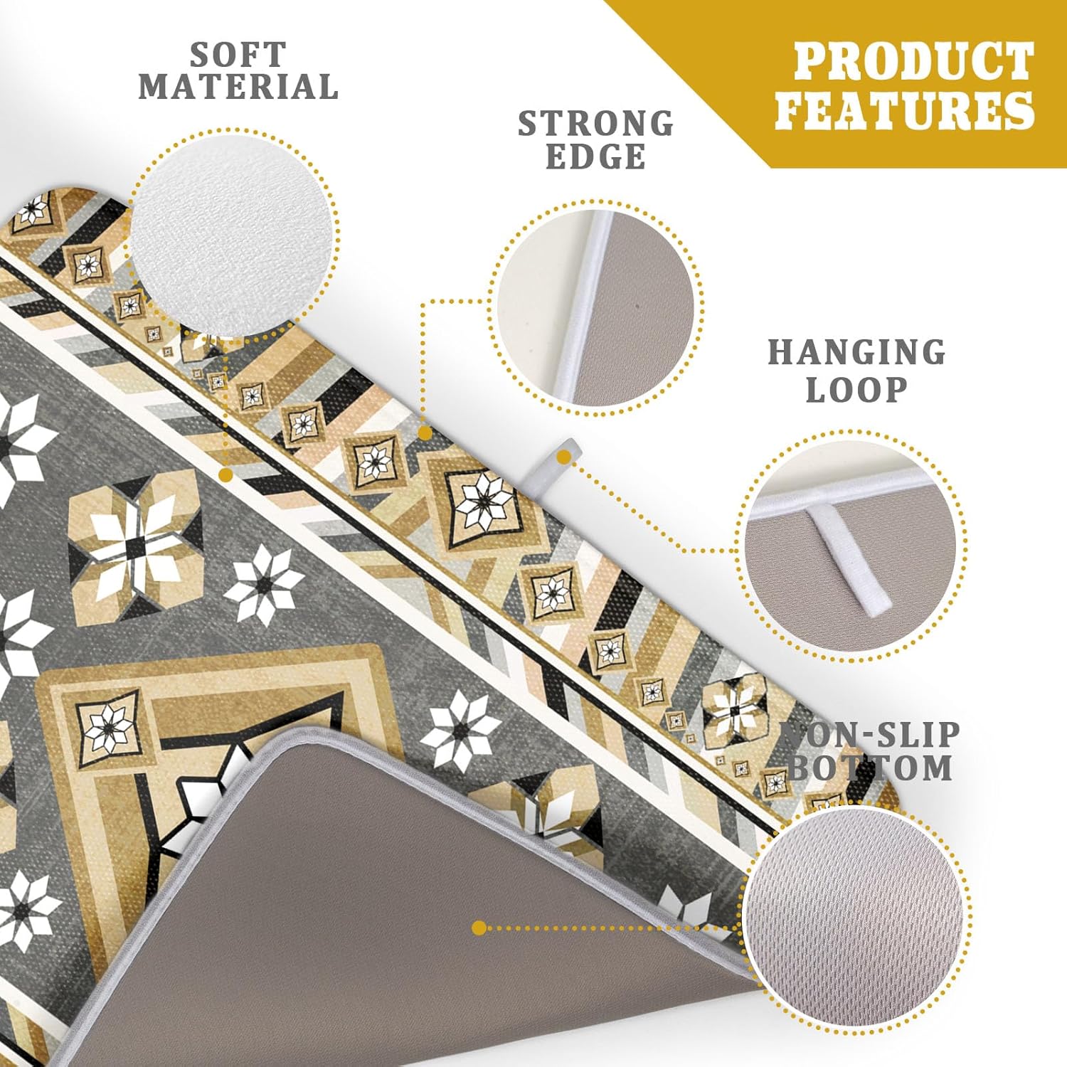 - 3【Unique Design】: Bohemian style dish drying mats with vibrant bright boho aztec pattern, which can add more charming charm to your kitchen office or coffee bar counter. The drying mat for kitchen counter with unique hanging rope design that can be hung without occupying any space,soft and foldable, easy to store.
