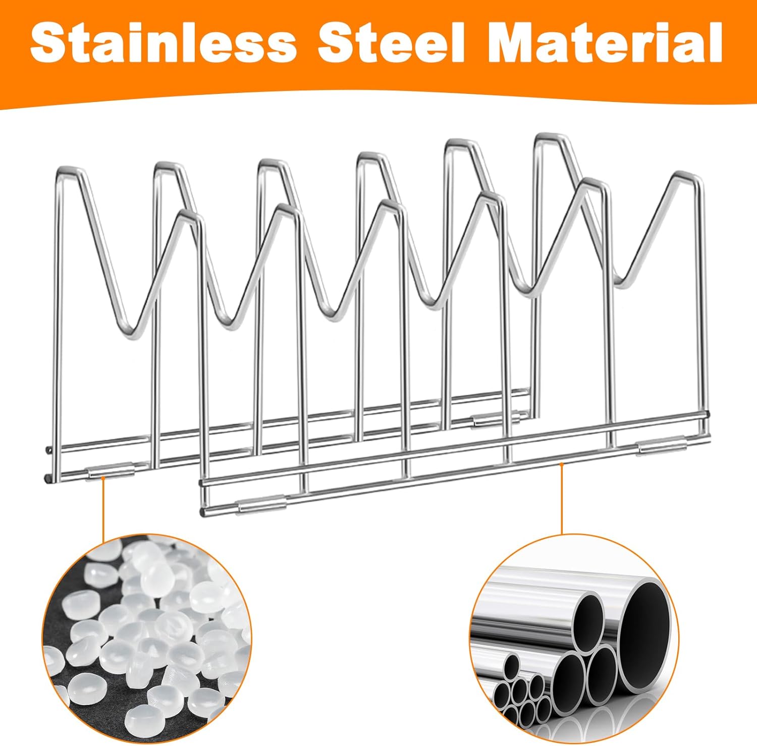 - STAINLESS STEEL MATERIAL: kitchen lid organizer is made of sturdy stainless steel, rust-resistant, and capable of supporting 22lb heavy items. You can simply wipe with a damp cloth and towel dry to remove dirt from the sturdy steel.