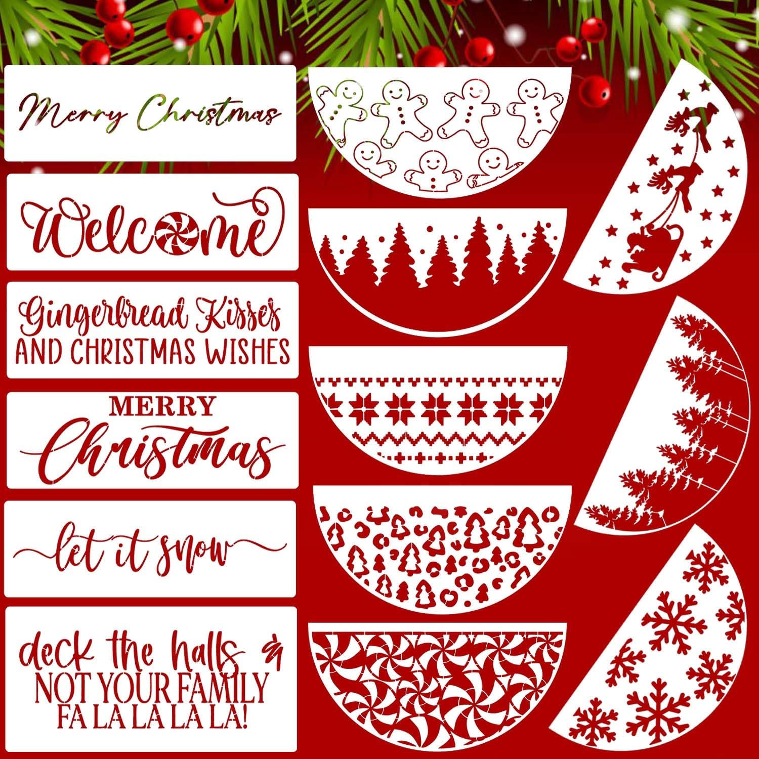 Christmas Stencils for Painting 12” Xmas Stencil for Wood Half Round Holiday Stencils Merry Christmas Let It Snow Templates for Porch Door Home Decor