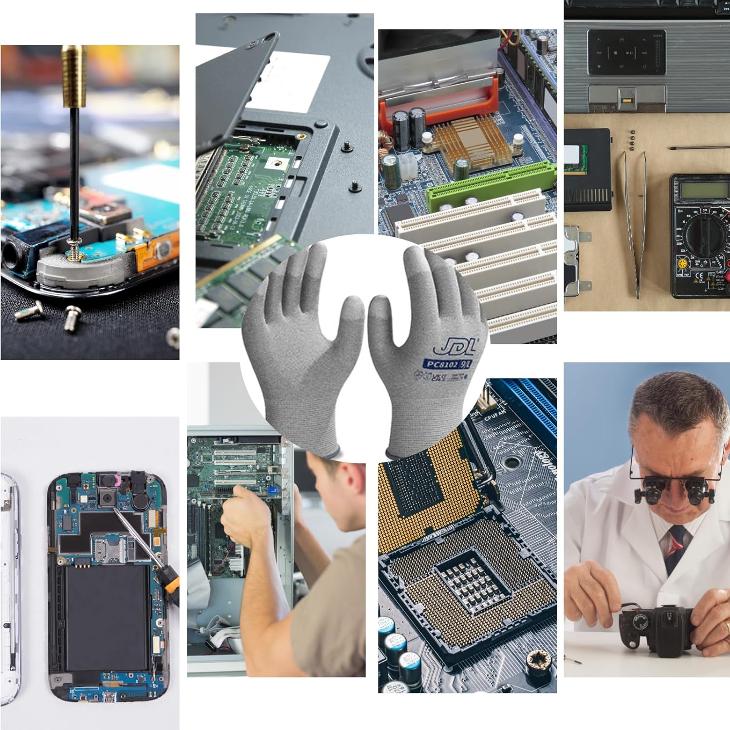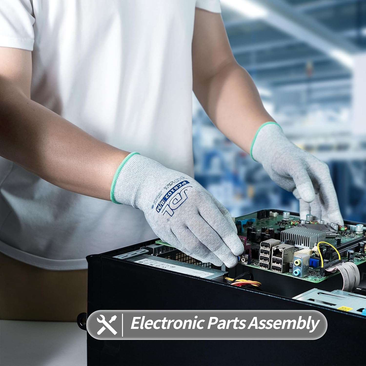 JDL ESD Work Gloves, Anti-Static Gloves for PC Building, 36 pairs, Computer Installation & Repair, High Resistance Carbon Fiber Gloves, Large