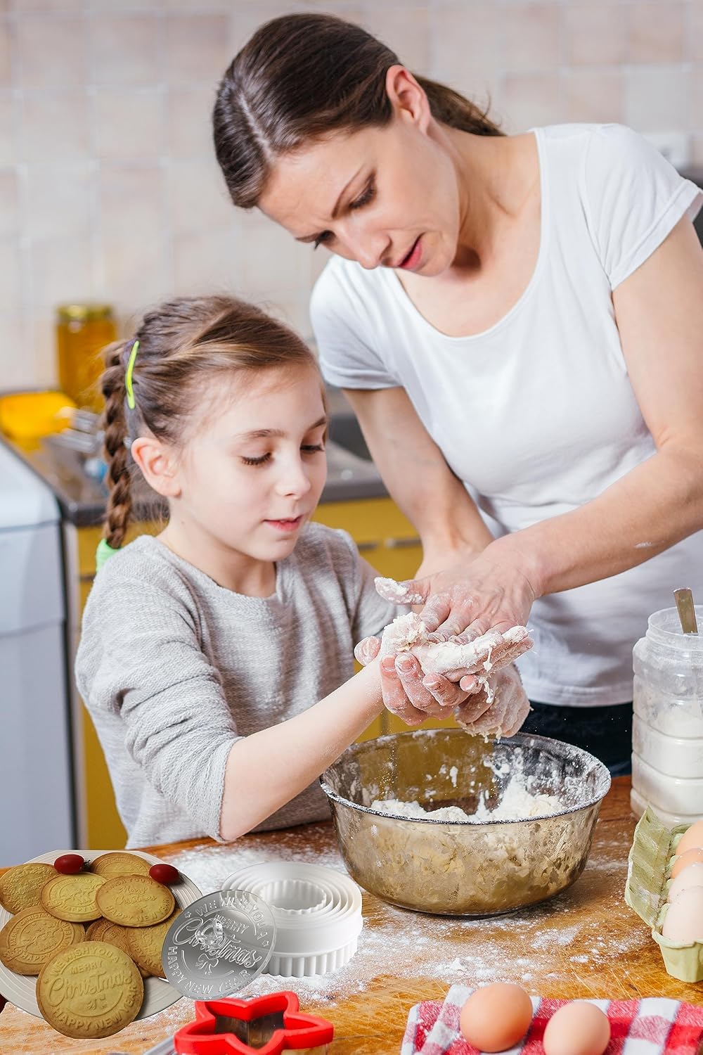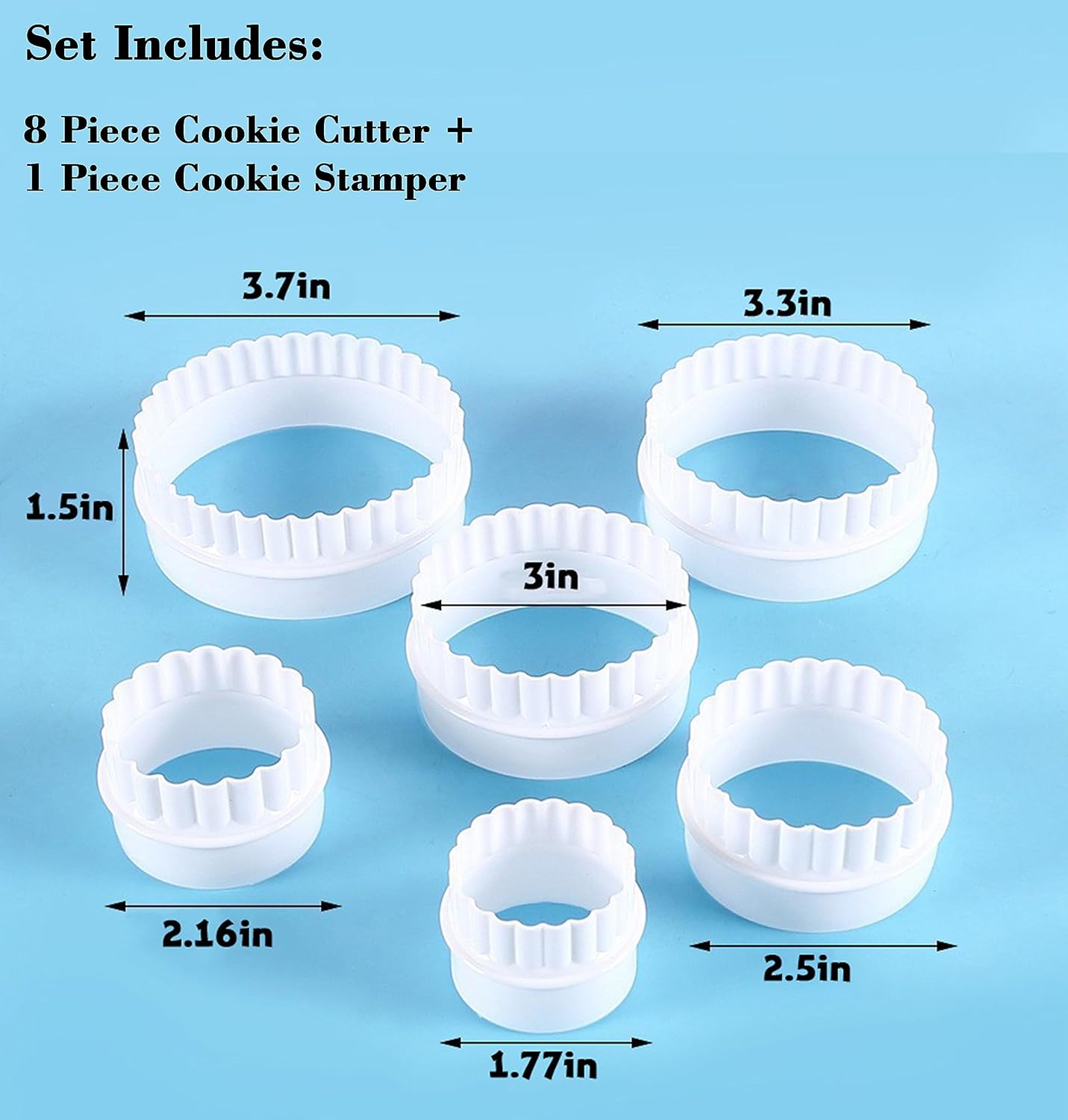 - If you buy Merry Christmas Cookie Stamps, you can get Cookie Stamps + a set (6 pcs) of different sizes of cookie cutters, this set can help you cut out different sizes of cookies and save you the trouble of buying them again and again