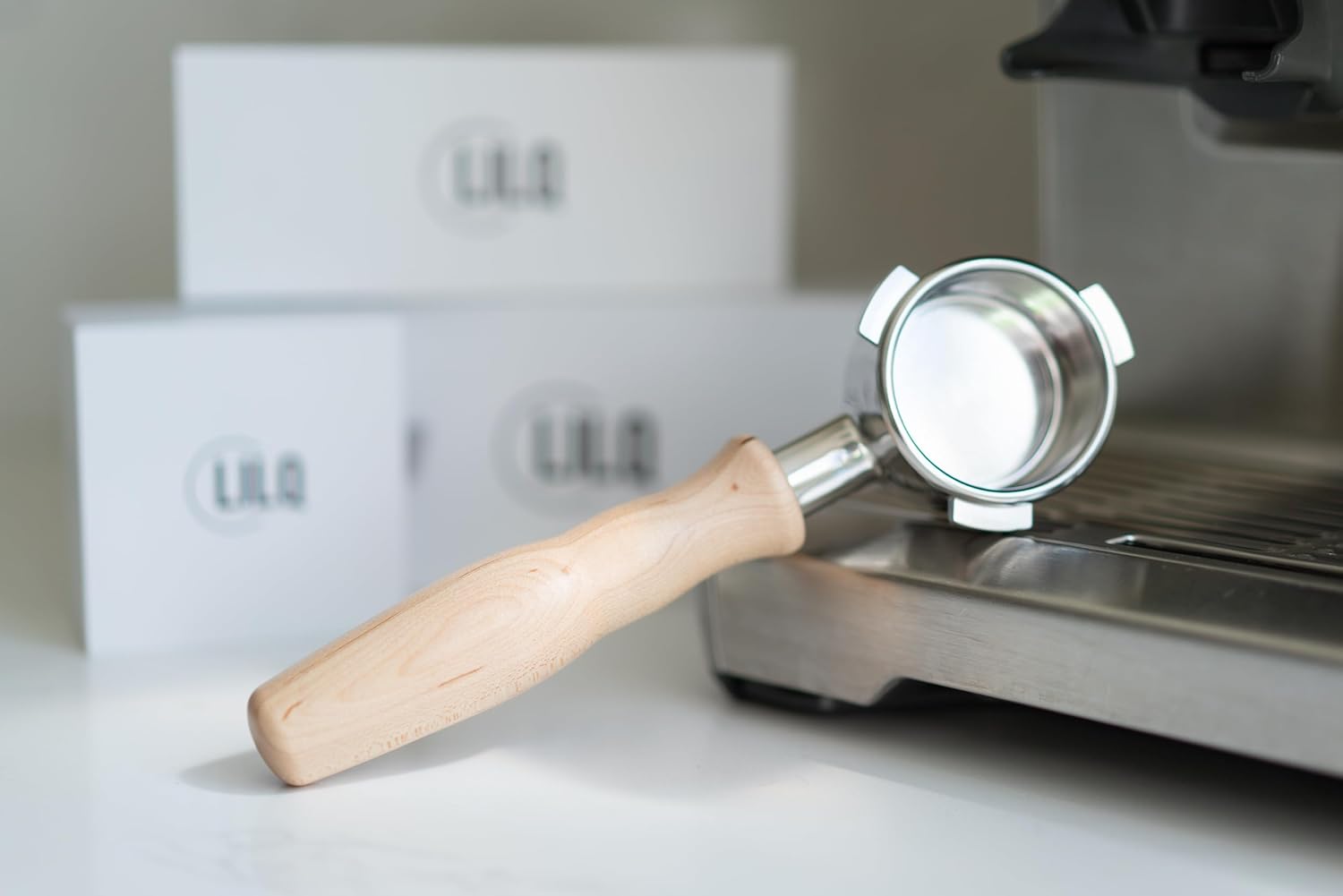 LILQ 54mm Naked Bottomless Portafilter Compatible with Breville Barista Express, Barista Pro, Bambino, and More – 18-20g basket included (Maple, 54mm)