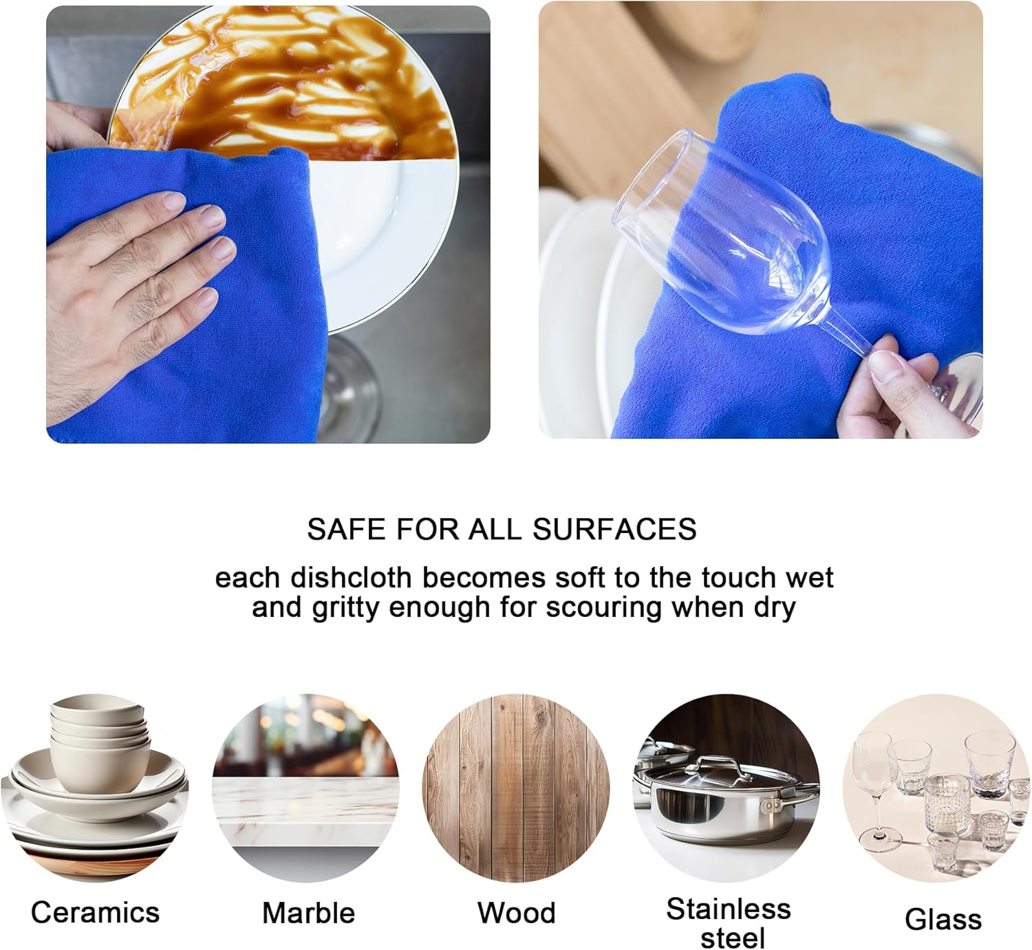 - HIGH QUALITY MATERIAL - Our dish rags are made of high quality non-abrasive and extra soft coral velvet thickening material, which is not easy to lint and fade, soft and not hurting hands, natural and without any chemicals. These dish cloths are not only suitable for kitchen cleaning, but also suitable for cleaning home furniture, car, window, electric appliance etc. It’s so easy to remove dust, dirt, stain, grease, fingerprints.