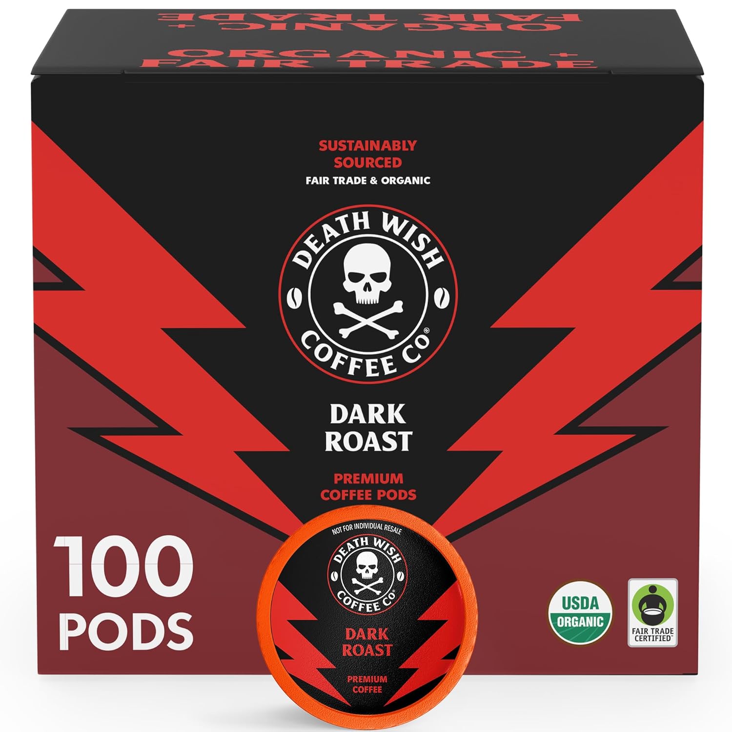 Death Wish Coffee - Single Serve Pods - Dark Roast Coffee Pods - Made with USDA Certified Organic Beans (Dark Roast, 100 Count (Pack of 1))