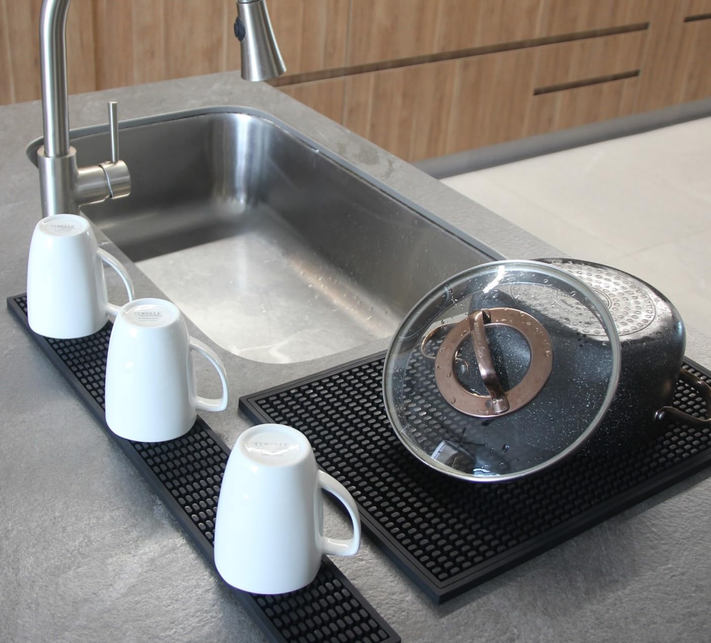 - SUPERIOR TABLETOP PROTECTION: Shield your furniture from spills, stains and water marks with our 0.4" Thick Rubber Bar Mat. Wide prongs ensures stability, preventing sliding on any countertop.