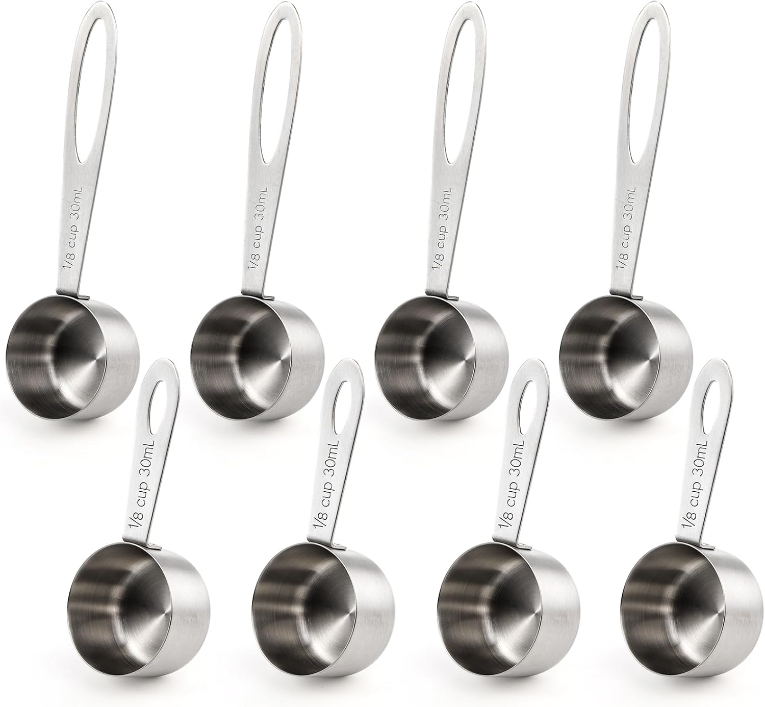 Hedume Set of 8 Coffee Scoop, Stainless Steel Coffee Measuring Scoops 1/8 Cup, Including 4 Pack Short Handled and 4 Pack Long Handle Coffee Scoops for Coffee, Tea, Sugar and Milk, 30 ml