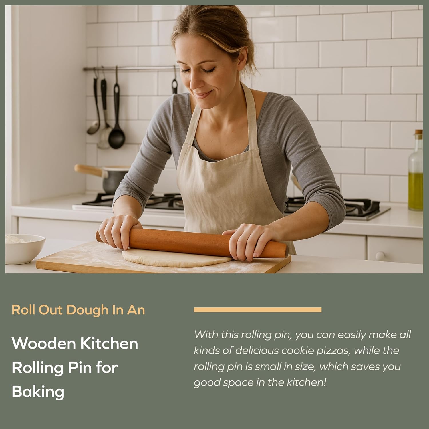 - Application: Easy to maneuver pizza dough, cookie, bread, fondant, pie and more. The Sapele wood has a certain medicinal value, which not only help you make delicious food but also let you feel the nature. 17.5" makes it easy to store anywhere in your kitchen.