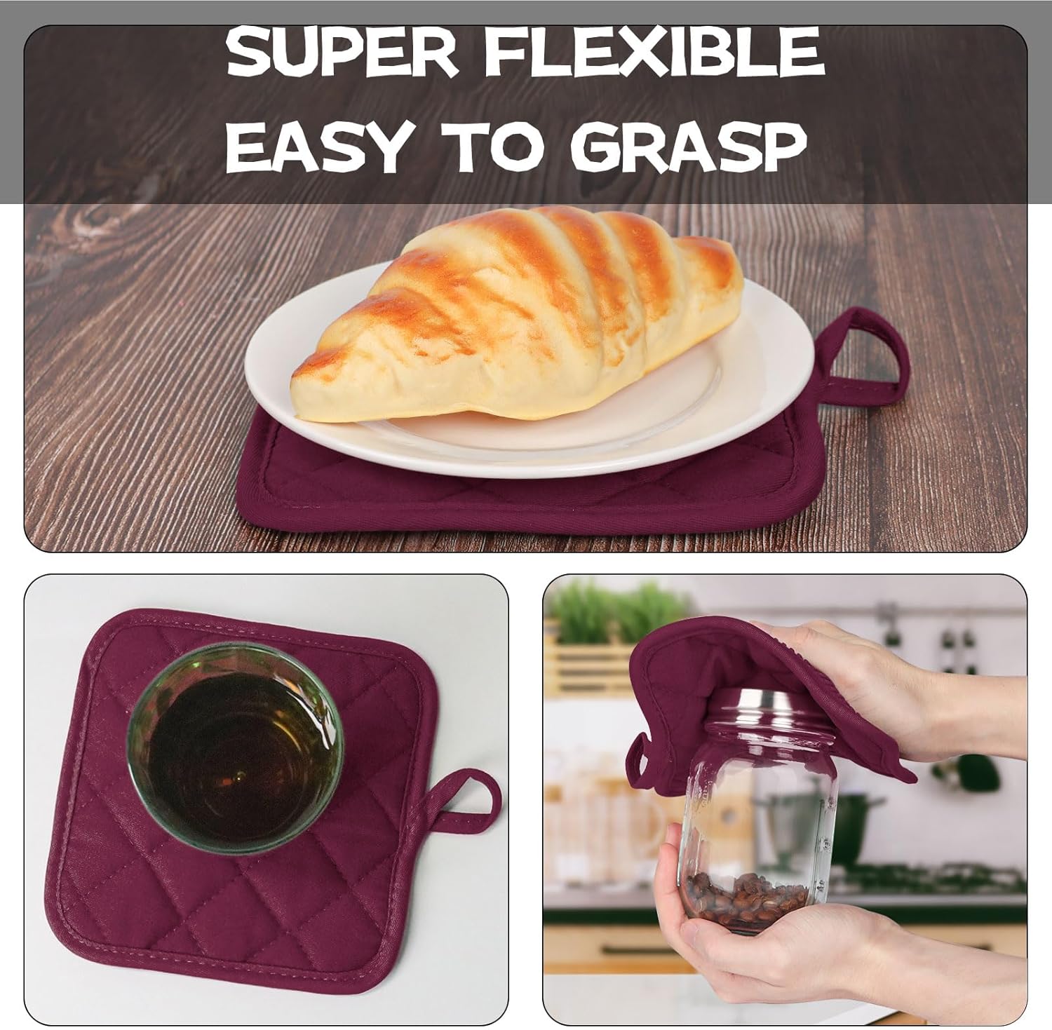 - 4 PIECE GREAT VALUE HOUSEHOLD ESSENTIALS PACK: Super value for 4pcs short oven mitts and pot holders, including 2 oven mitts(6.8 x 5.3in) and 2 pot holders (6.6 x 6.6in), perfect for daily use and coordinate well with your house and kitchen.