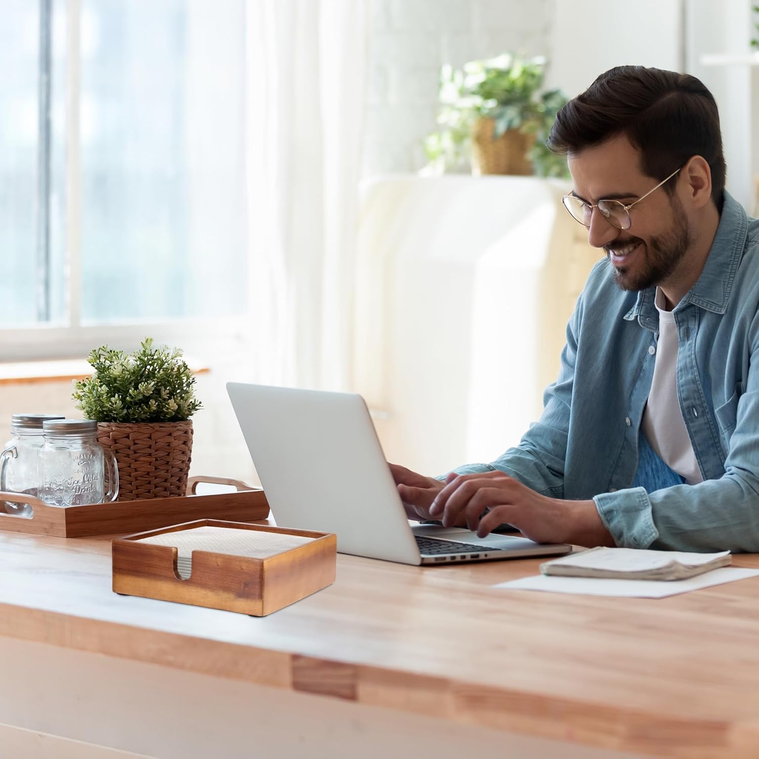 - Subtle Organization: Our table napkin tray provides an organizing solution for all your napkin papers. It also gives you easy access to the napkins whenever you need them. Weighing just around 1lb, this product is lightweight and the rubber pad at the back prevents tipping over. You can easily move it around if you plan to use it outdoors or indoors.